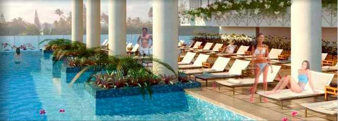 The Trump International Waikiki is thirty eight stories of luxury and was one of the first ultra luxury Oahu hotels. It is only a few steps away from Waikiki's stunning white sandy beaches and has elegantly beautiful landscaping including the Pacific Ocean surrounding the hotel. The Trump International has boutiques, restaurants and elegant accommodations for all of their guests. It is approximately a twenty minute drive from the Honolulu International airport to the hotel.