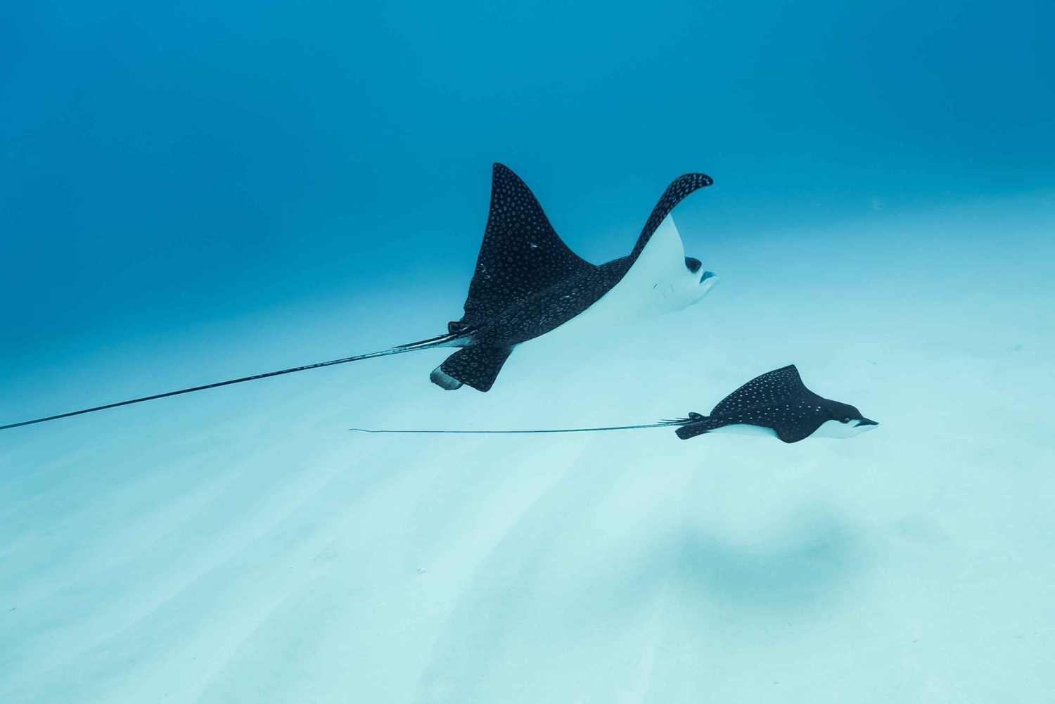 Mens vi er om bord, holder vi øje med vilde delfiner, mantarokker og sæsonbestemte pukkelhvaler. Efter snorkling kan du slappe af på vores rummelige flydemåtte og nyde en BBQ-lunch med 100 % oksekød (vegetariske hotdogs kan bestilles på forhånd), chips og juice til alle.
