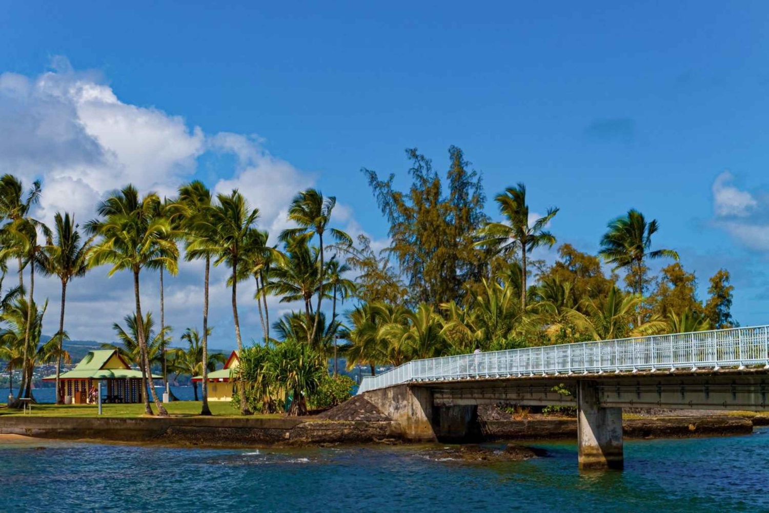 Derefter tager vi dig med gennem Liliuokalani Park, et fredfyldt område med japanske buede broer, fiskedamme og tårnhøje banyantræer. Parken er den største autentiske have i Edo-stil uden for Japan. Du vil se den nærliggende Moku Ola, også kendt som Coconut Island, en ikonisk ø i Hilo-bugten med naturskønne udsigter og skyggefulde palmer.