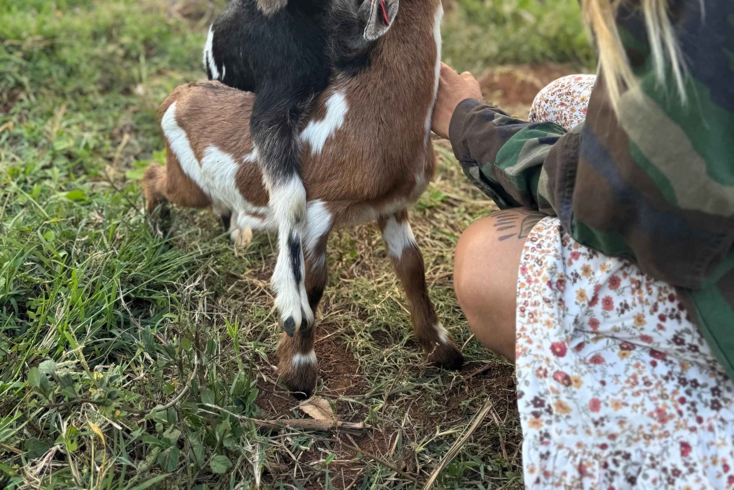 Nyd et praktisk bondegårdseventyr i Kauai – leg med voksne geder, flaskeernær baby-mininubiere, og mød andre venlige dyr.