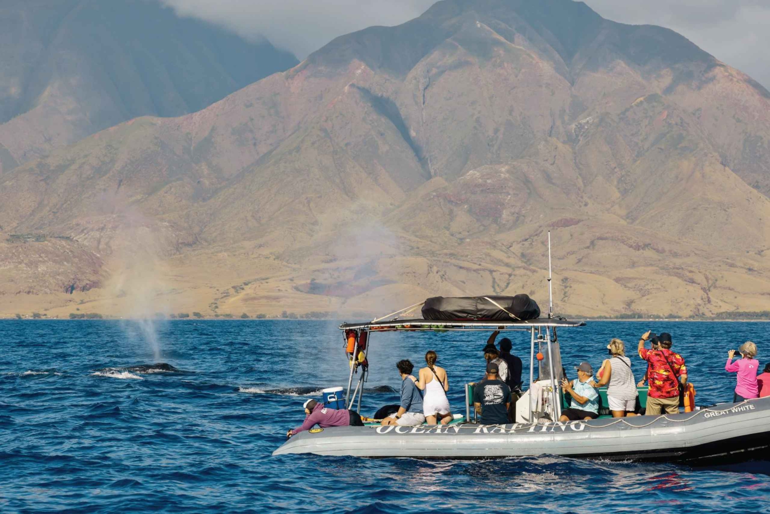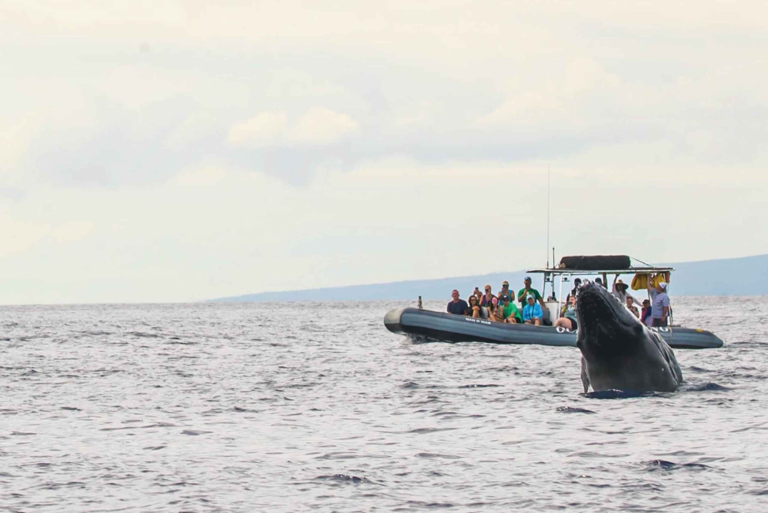 Tag med på et hvalsafari i øko-raft på Maui for at se Hawaiis oprindelige pukkelhvaler i deres naturlige habitat. Lær interessante fakta om hvalerne af din naturvejleder, lyt til deres sang med en hydrofon, og tag betagende billeder helt tæt på.