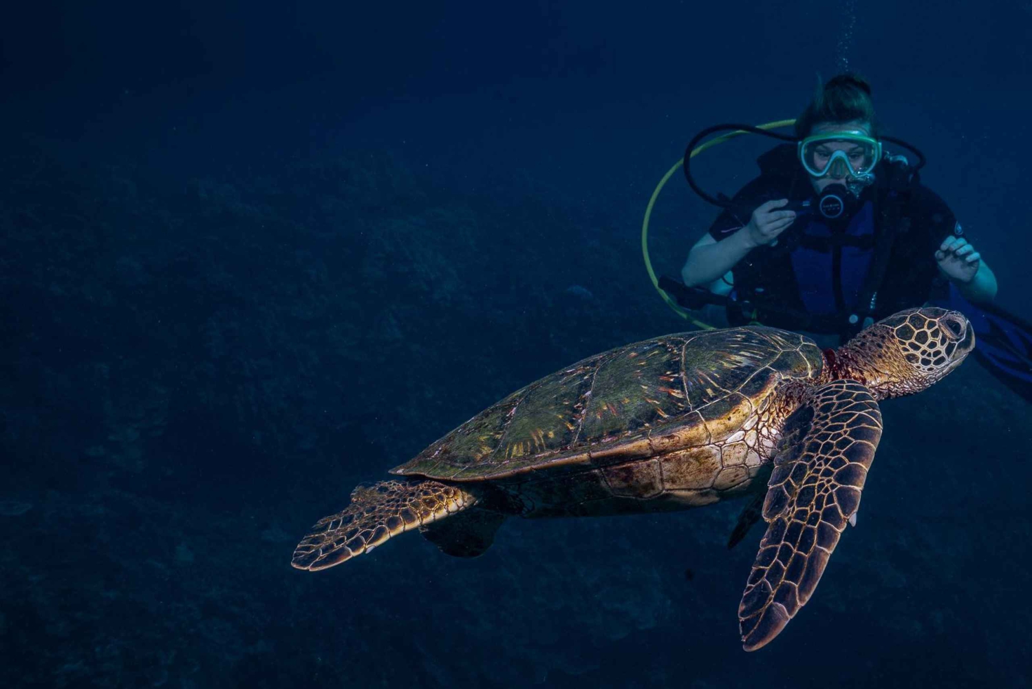 Lerne die wichtigsten Fertigkeiten, die du bei jedem Tauchgang anwenden wirst. Habe Spaß beim Schwimmen und Erkunden von Mauis unberührten Korallenriffen. Begegne Schildkröten und unzähligen anderen tropischen Fischen.