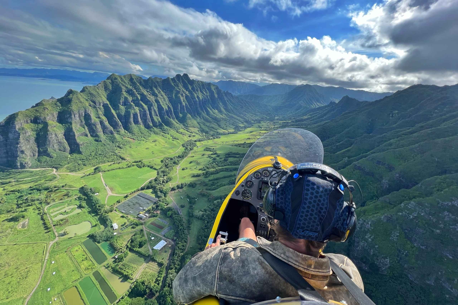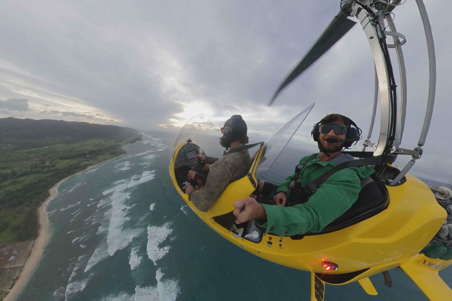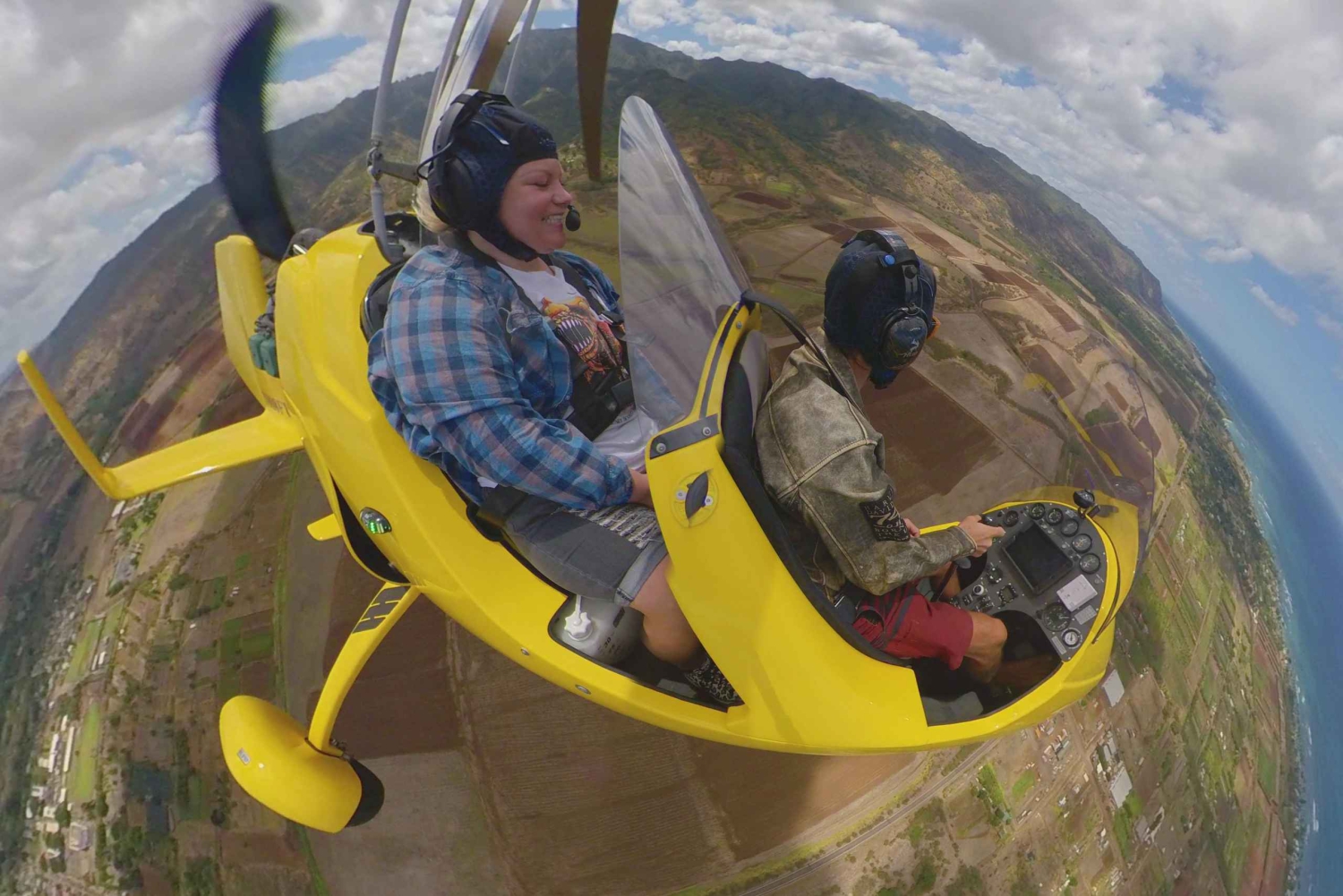 Erkunde die Nordküste von Oahu aus der Luft mit einem aufregenden Gyroplane-Flug. Spüre den Wind in deinen Haaren, während du dieses interaktive Flugabenteuer mit Skyland Air genießt.