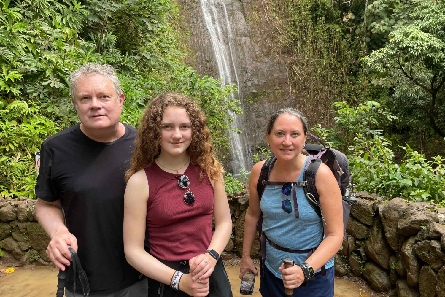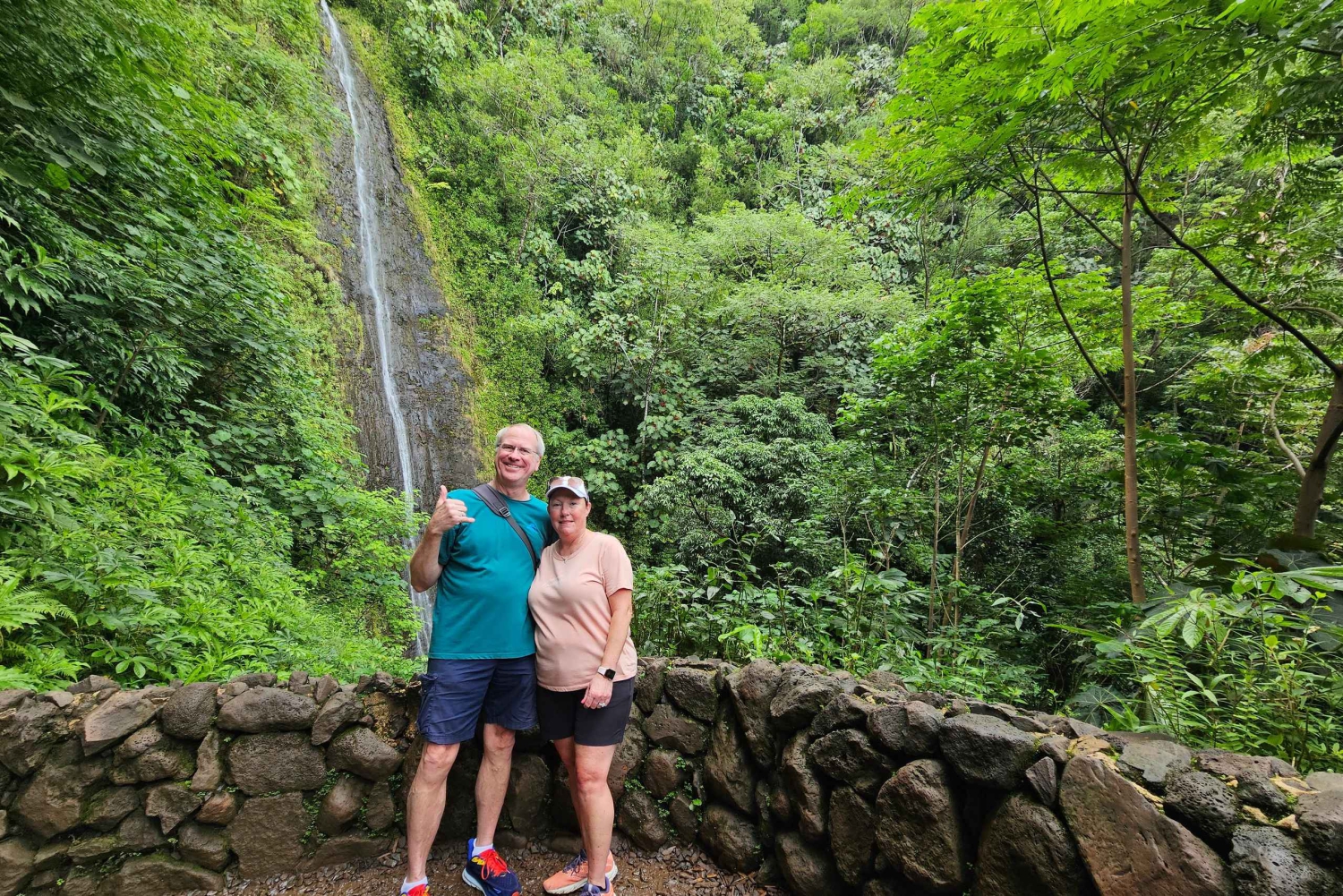 Schließe deine Fahrräder am Ausgangspunkt ab und begib dich auf eine geführte Wanderung durch den grünen Regenwald zu den majestätischen Manoa Falls. Erlebe die Kaskaden inmitten der ruhigen Umgebung, bevor du nach Waikiki zurückkehrst, erfüllt von der Erinnerung an ein unvergessliches Öko-Abenteuer.