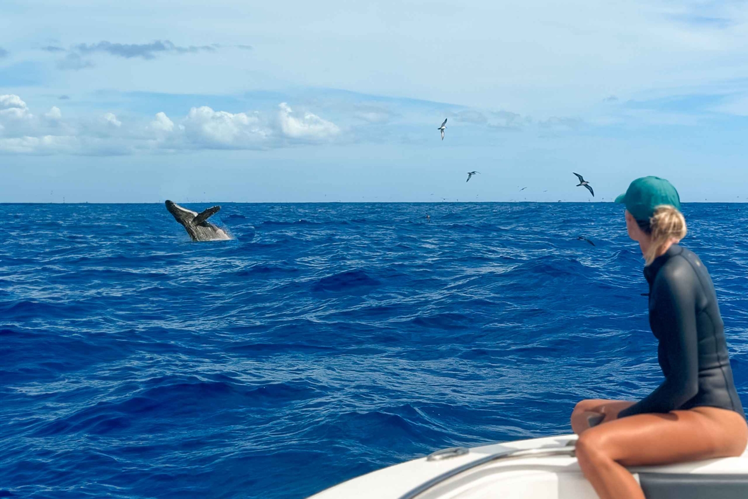 Auf dem Rückweg zum Hafen hältst du Ausschau nach anderen Tieren, darunter Spinnerdelfine, grüne Meeresschildkröten und vielleicht sogar Rauzahn-, Fleckendelfine oder Große Tümmler.