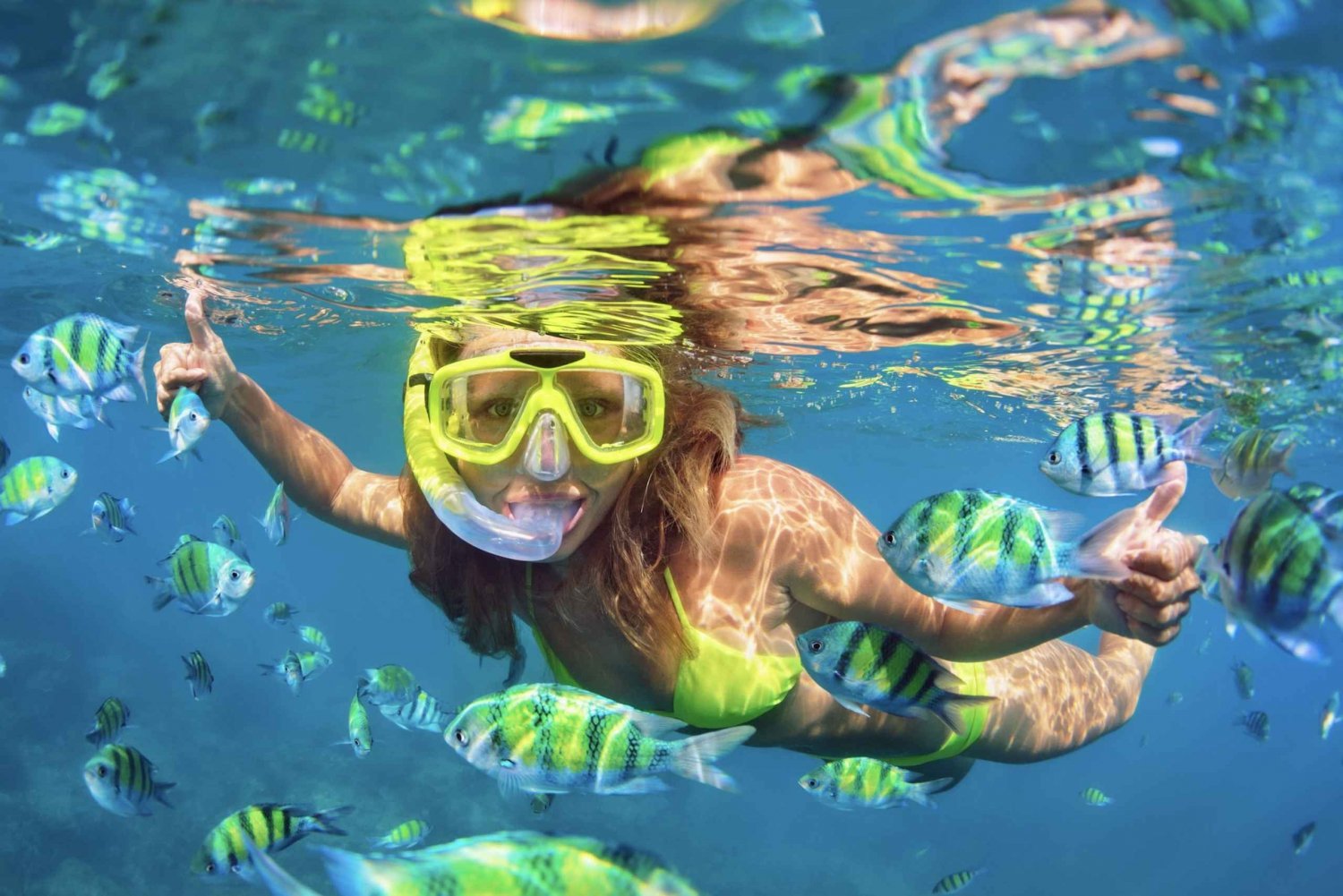 ¡2 horas de snorkel y aventura en el parque acuático oceánico! Disfruta del snorkel, deslízate por un tobogán acuático de 10 metros, bucea desde la plataforma hinchable y relájate en nuestra colchoneta flotante, ¡todo en una sola excursión!