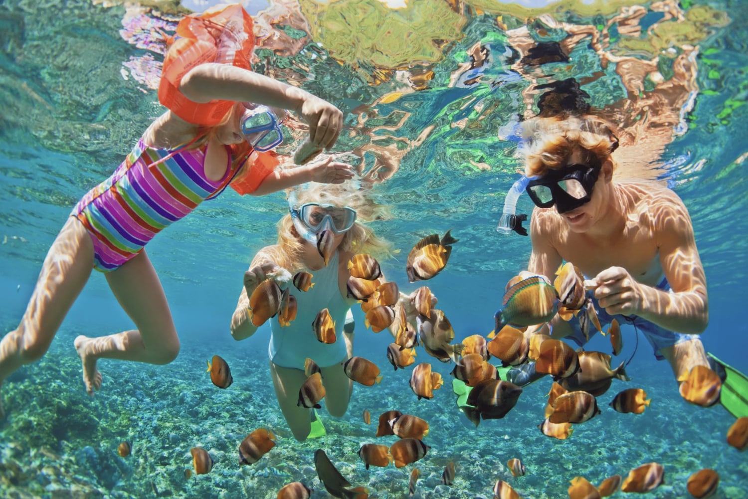 Experiencia de snorkel: nada en las cristalinas aguas hawaianas, conocidas por especies autóctonas como el pez ballesta, el pez trompeta, las tortugas marinas y, en ocasiones, los delfines. Los lugares para practicar snorkel se eligen en función de la claridad y las condiciones del agua.