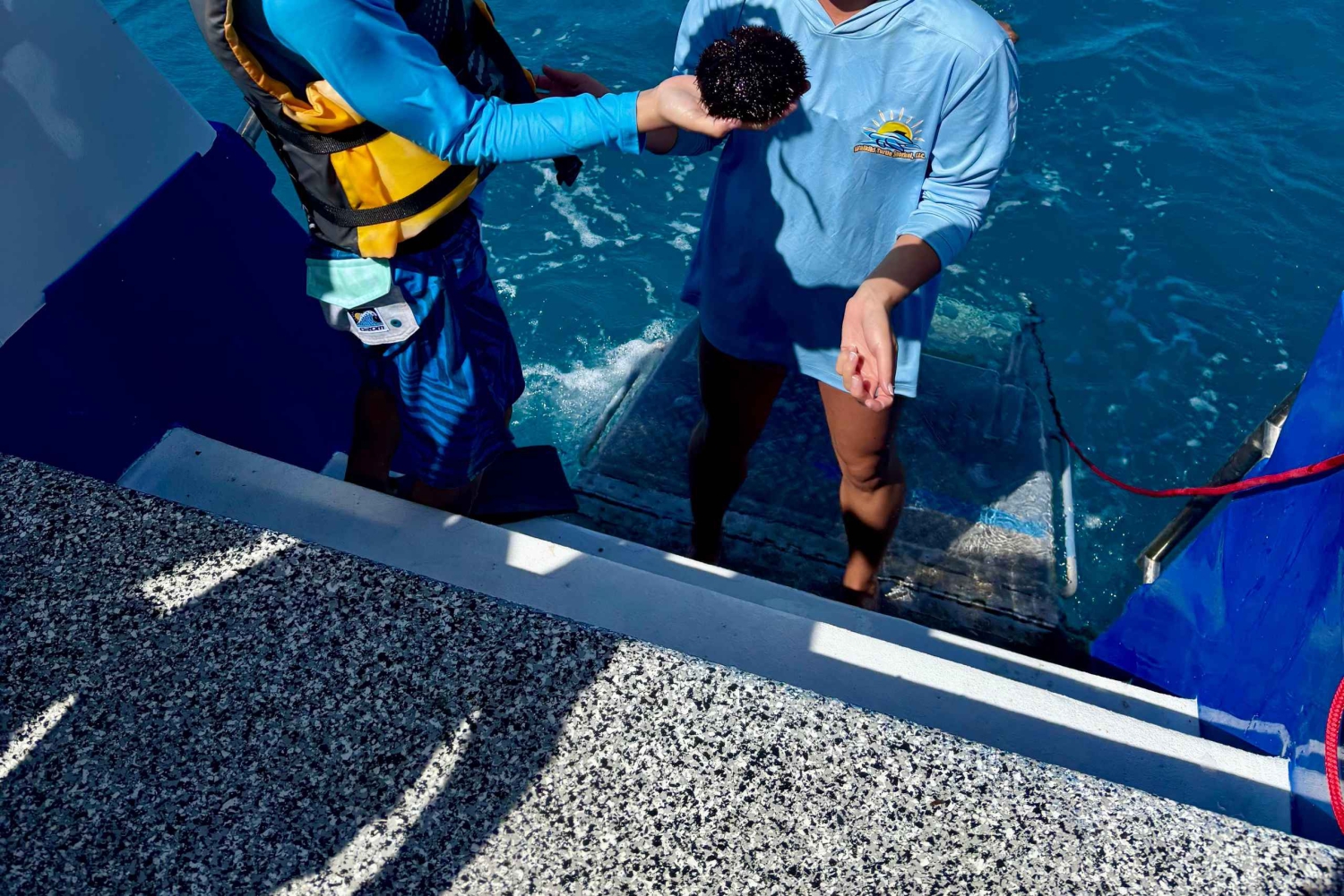 - Navega en un catamarán de dos pisos de 55 pies con sala de observación con suelo de cristal.