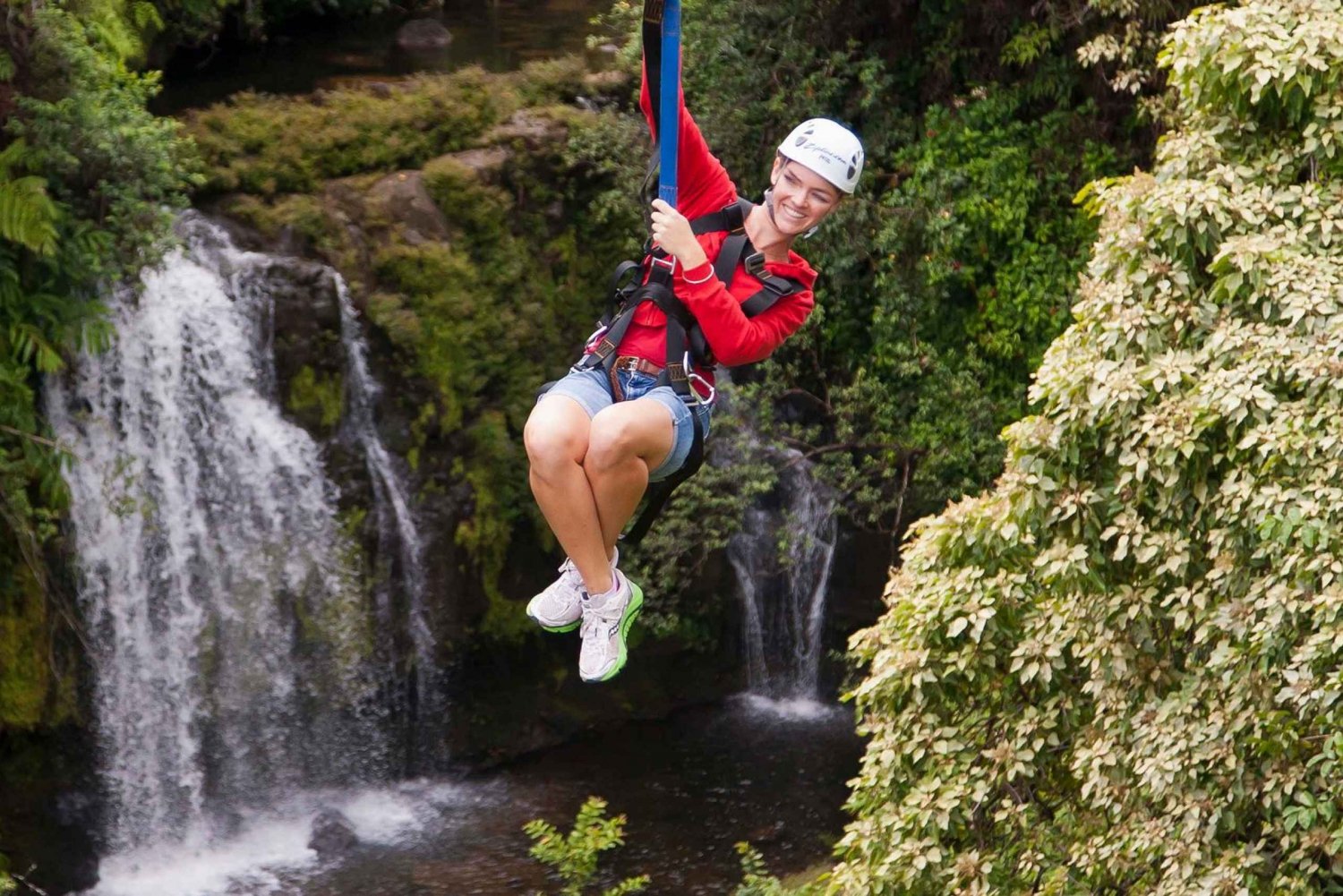 Experience an exciting zipline tour in Hawaii. Ride seven amazing ziplines with awe-inspiring landscape and ocean views, and fly directly over a private 250ft waterfall.