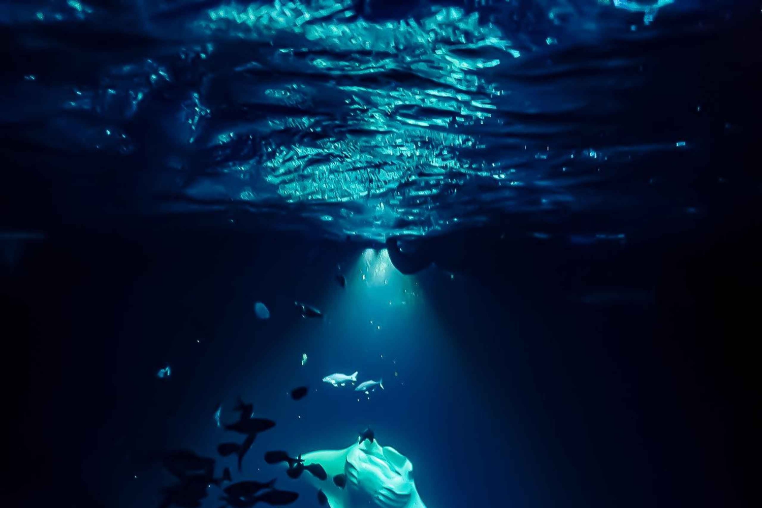 Once the sun sets, you'll gear up in snorkel masks. A short ride takes you to a secret site only accessible by boat, called 'Manta Ray Heaven,' rich with plankton, where submerged lights called “campfires” attract the manta rays by drawing in their food source. Guests float on a lighted platform guided by lifeguard-certified staff, watching these gentle giants perform graceful barrel rolls as they feed below. The snorkeling is easy and relaxing, suitable for all skill levels.