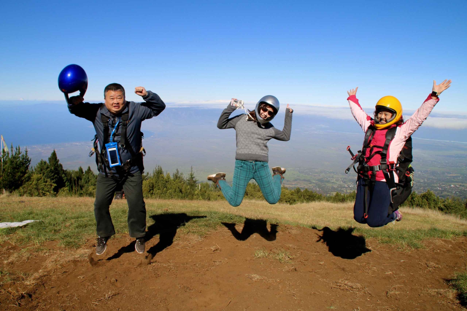 After meeting at our Landing Zone we drive up the slopes of Mount Haleakalā passing through Kaonoulu Ranch pasture land and then through the Haleakalā Watershed Preserve forest, to reach our Ferns launch site at an elevation of 6,500 feet. As you take off, a beautiful panorama unfolds before you, featuring sweeping bi-coastal views of Maui’s central valley as well as three other Hawaiian islands in the distance. Capture these awe-inspiring moments with your own phone or compact camera, and your instructor will also snap inflight photos as part of the experience, providing them to you after landing at no additional cost. With ample altitude at your disposal, we can tailor your flight to your desires. You may choose to glide around the skies and simply enjoy the fantastic views. Of, if you’re more of an adrenaline junkie, we are happy to demonstrate some exhilarating high G ‘roller coaster’ type maneuvers. The choice is yours – we’re here to make it your dream flight.