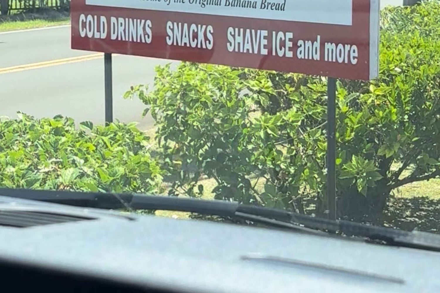 Make your first stop at Jaws Country Store for a restroom break, a chance to stretch, and grab a quick snack. Continue to Ka'anae Peninsula, where you can savor Aunt Sandy's famous banana bread, admire rainbow eucalyptus trees, and take in the beautiful scenery for photos.