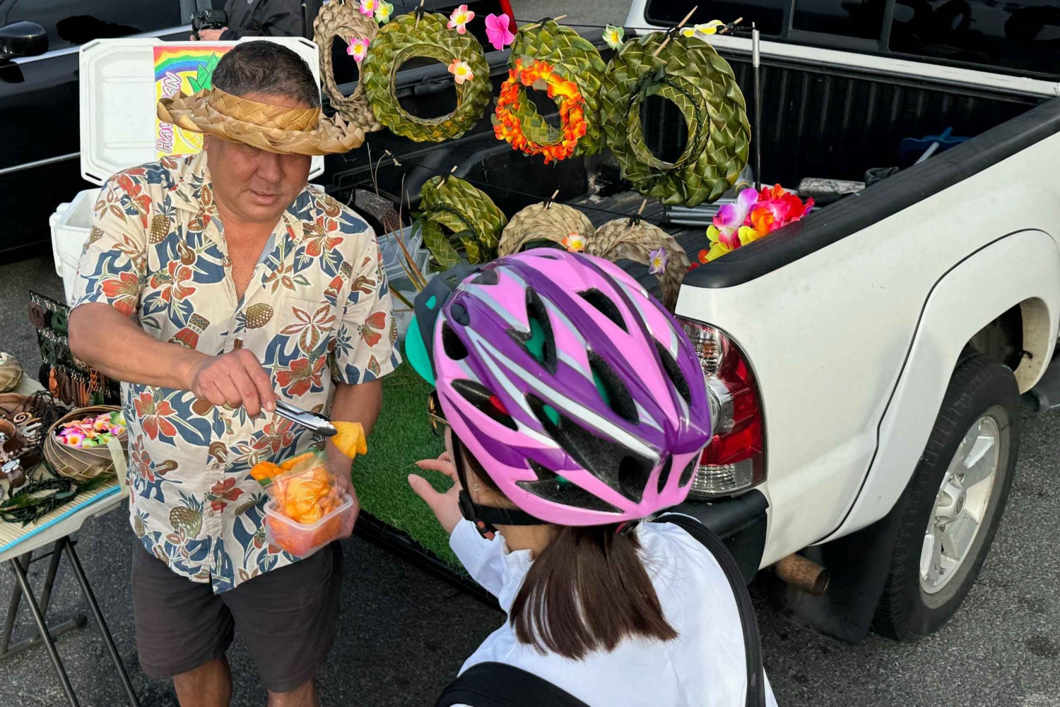 Tapaamme aikaisin, jotta vältämme väkijoukkoja ja kuumuutta kraatterikokeella. Kun pyöräsi on sovitettu ja sinulle on annettu turvallisuusohjeita, lähdemme Kapiolani Parkiin tutustumaan sen historiaan, ja sitten suuntaamme alas WW1 Natatorium Memorial -muistomerkille katsomaan, missä kuuluisa Duke Kahanamoku ja muut harjoittelivat olympialaisia varten. Pääset vierailemaan Diamond Headin juurella olevalla syrjäisellä vihreällä hiekkarannalla; näet Disneyn talon ja rullaat muiden rikkauden ihmeiden kotien ohi.