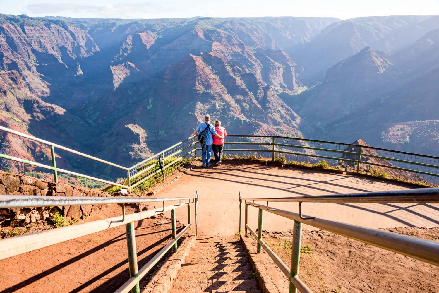 HUOMAUTUS: Waimea Canyon Lookout on suljettu 14.4.2025–8.12.2025 rinteiden ja perustusten korjaustöiden vuoksi. Suljetun näköalapaikan korvaamme pysähdyksellä Pu‘uhinahina Lookoutissa, josta avautuu erilainen mutta yhtä vaikuttava näkymä Waimea Canyonille. Teemme myös muutaman ylimääräisen valokuvauspysähdyksen, jotta vieraat voivat nauttia maisemista rauhassa.