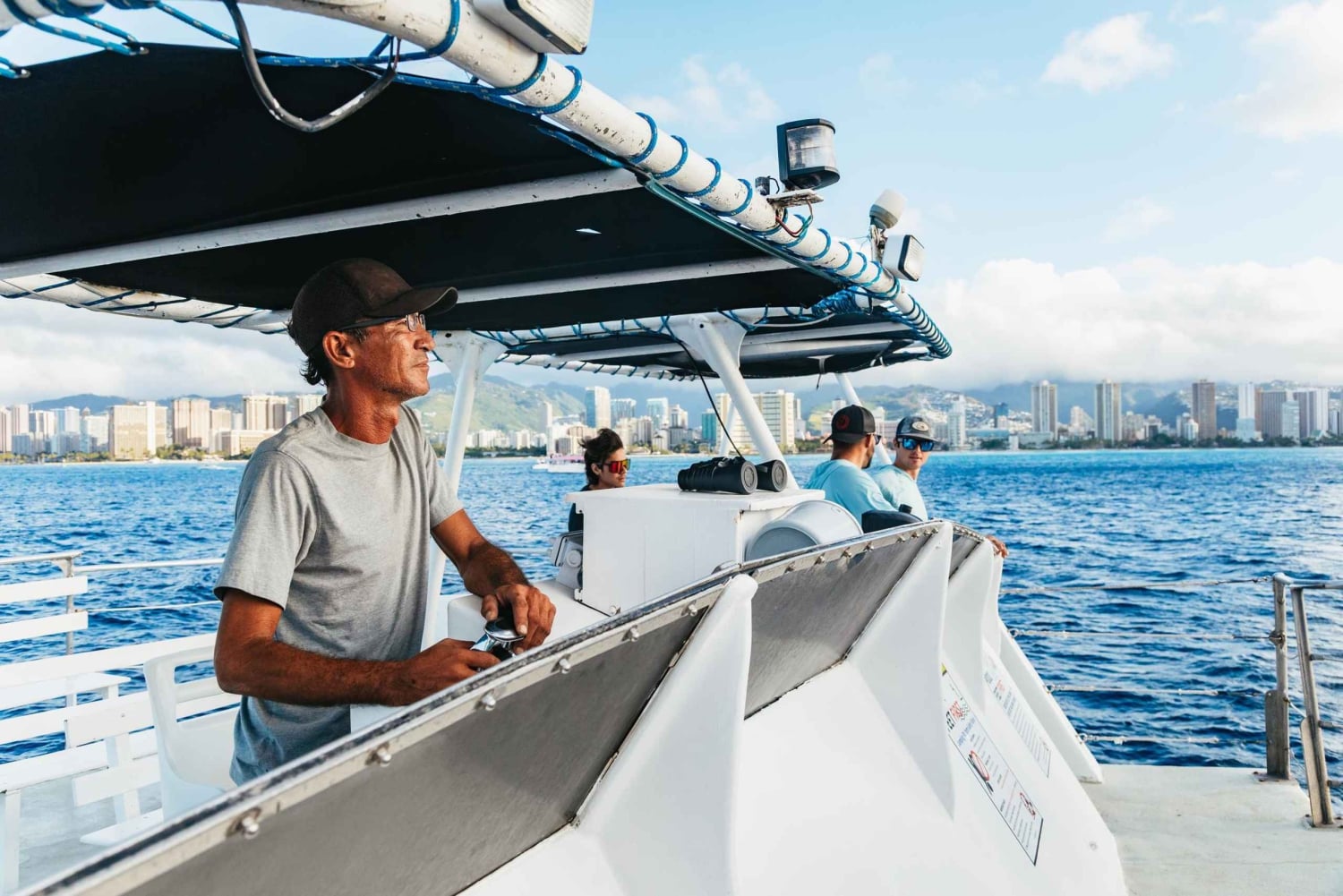 Etsi valaita niiden luonnollisessa ympäristössä tällä Honolulusta lähtevällä risteilyllä. Nauti mehua, vettä ja välipaloja laivalla, kun etsit majesteettisia ryhävalaita Waikikin rannikon edustalla.