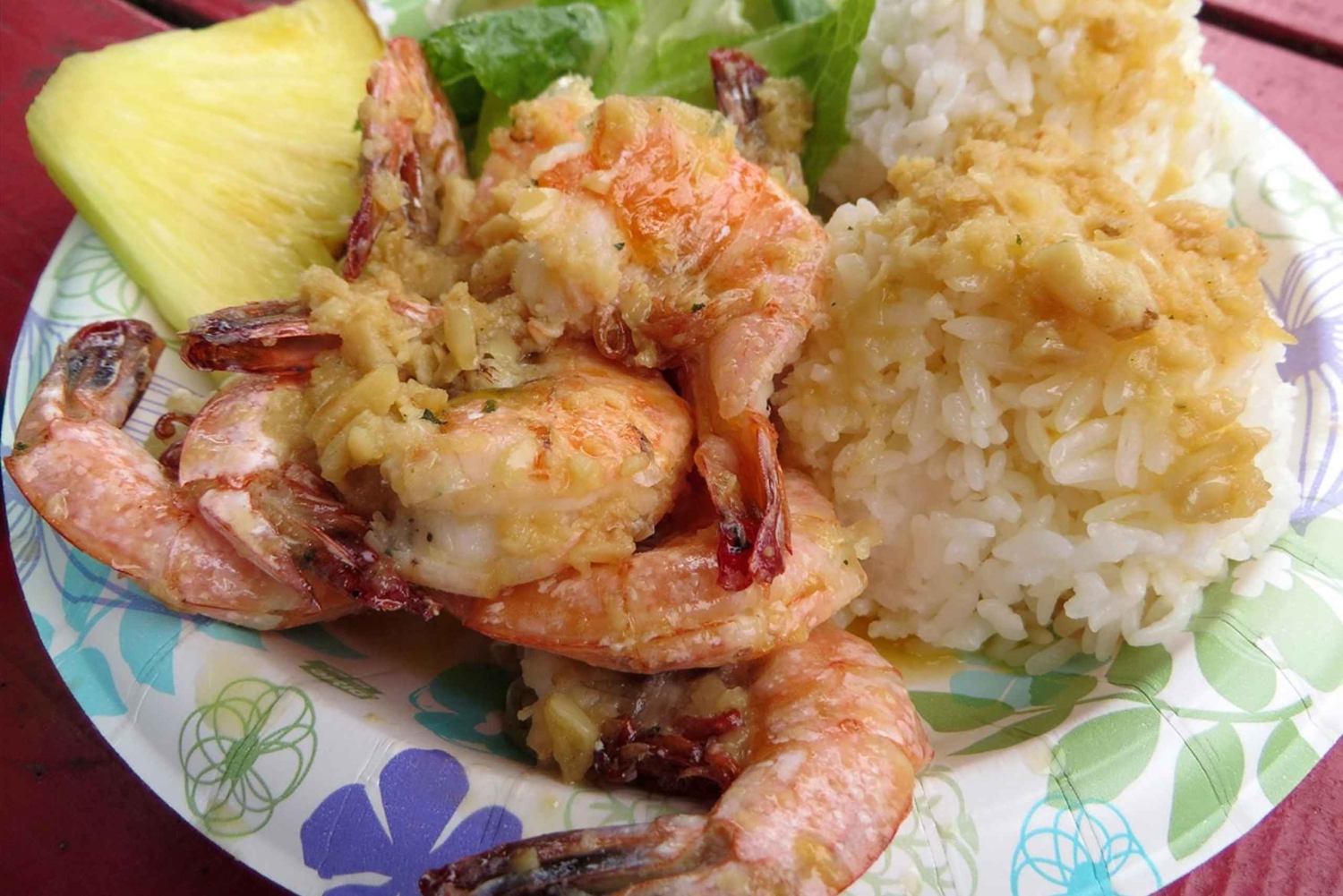 Vierailemme maisemallisella Chinaman's Hatilla, joka on viehättävä saari Kaneohe Bayn lämpimissä trooppisissa vesissä. Kahukussa, North Shoren kuuluisien katkarapujen viljelypaikassa, voit tarkkailla uhanalaisia kosteikkolintuja ja maistella herkullisia paikallisesti viljeltyjä valkosipulikatkarapuja, kalaa tai kanaa ja virkistäviä juomia. Voit valita yhdeksästä erilaisesta katkarapuruoasta (*lisäksi Chicken Katsu tai Veggie Chow Mein -vaihtoehdot).