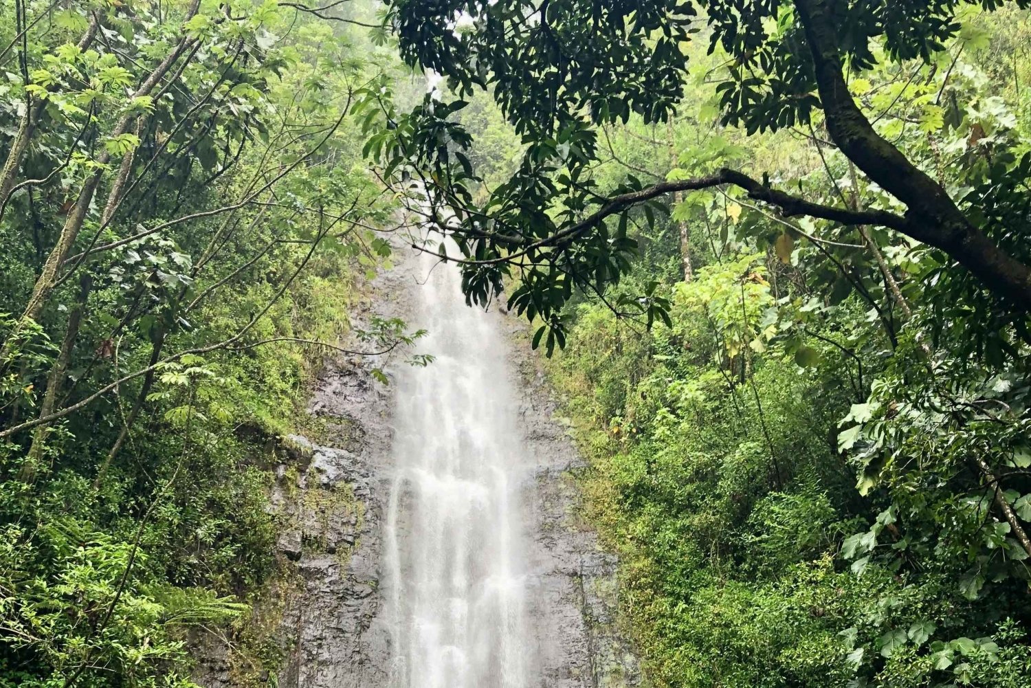 Tämä maltillinen 2 mailin edestakainen opastettu vaellus on loistava tilaisuus tutustua Havaijin rehevään trooppiseen sademetsään, kokea rauhallisia puroja ja nähdä upea havaijilainen vesiputous. Tule mukaan opastetulle vesiputousvaellukselle yksityisalueella, kun tutustumme Havaijin paratiisin rehevään trooppiseen kasvillisuuteen, rauhallisiin puroihin, viehättävään uima-altaaseen ja syrjäiseen 35 jalan vesiputoukseen, josta on merinäköala tuulen puoleiselle Oahulle.