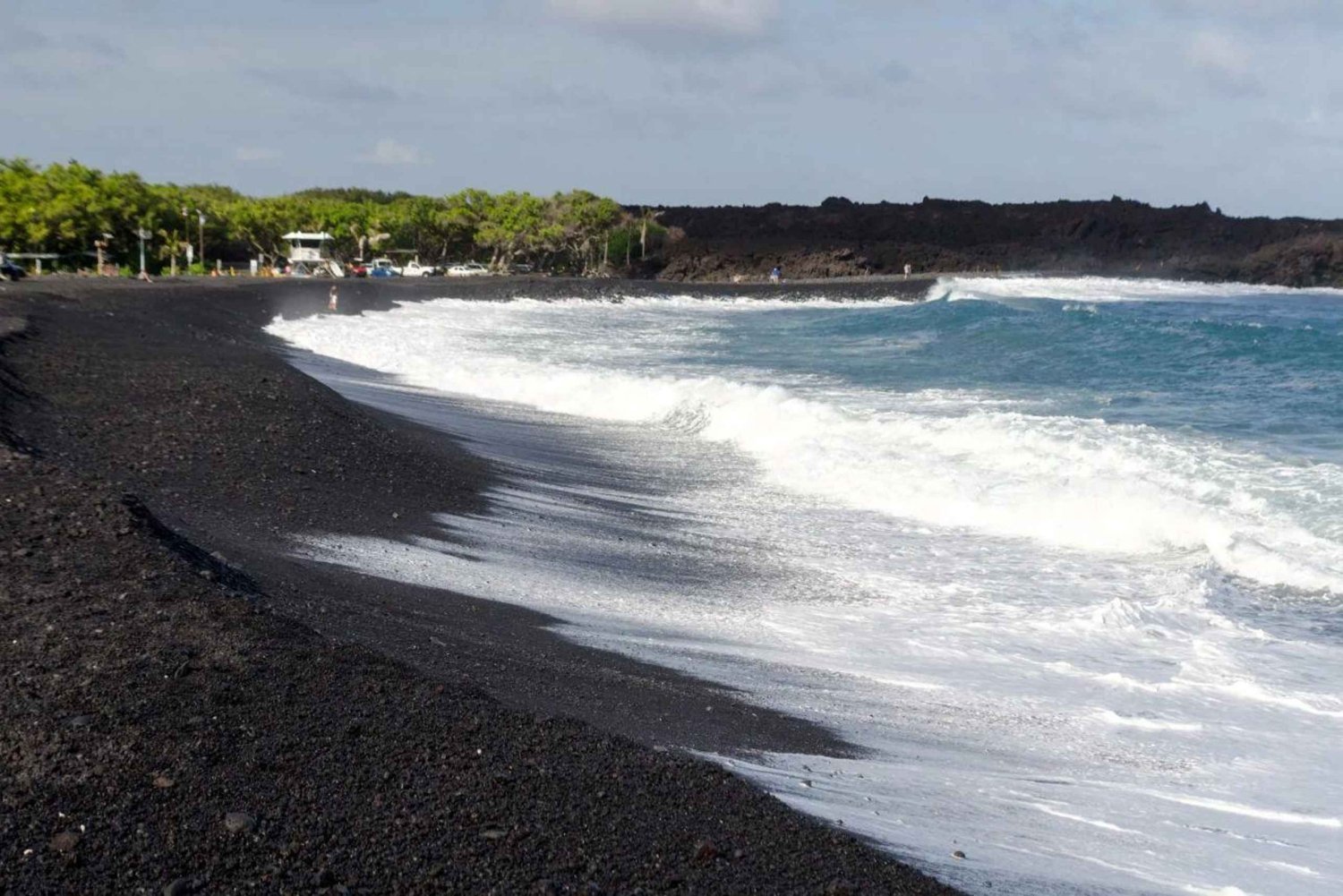 Veuillez commencer votre aventure au port de croisière de Hilo ou à l'hôtel Hilo Hawaiian. Découvrez la toute nouvelle plage de sable noir de l'île, créée par les coulées de lave de 2018.