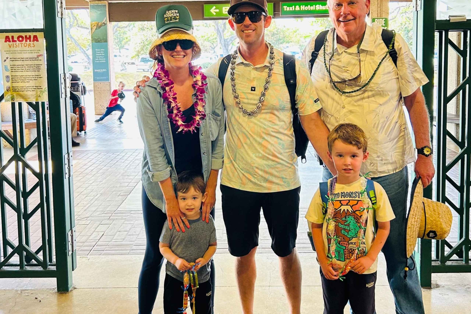 Kauai Lei Greeting accueille les visiteurs avec aloha à leur arrivée à l'aéroport de Lihue, sur l'île de Kauai. Un lei traditionnel de fleurs fraîches est une merveilleuse tradition ancienne. C'est un symbole de salutation, d'aloha, d'amour, de célébration, d'amitié et d'honneur. Recevoir un lei dès votre arrivée à Kauai est une expérience merveilleuse et mémorable. C'est le début idéal de vos vacances ou un cadeau pour vos proches. Vous recevrez un lei de fleurs d'orchidées fraîches (collier), un lei de feuilles de Ti ou de noix de Kukui (hommes) ou un lei de bonbons (pour les enfants). En option, vous pouvez vous faire prendre en photo avec votre téléphone/appareil photo en guise de souvenir. Dès votre arrivée à Kauai à l'aéroport de Lihue, vous recevrez un lei traditionnel et serez accueilli à Kauai avec un aloha et un lei frais de votre choix lorsque vous entrerez dans la salle de récupération des bagages. Nous vous attendrons avec une belle pancarte personnelle écrite à la main avec votre/vos nom(s). Nous aimons partager nos meilleurs conseils sur Kauai et répondre à toutes vos questions sur Kauai pendant que vous attendez l'arrivée de vos bagages.