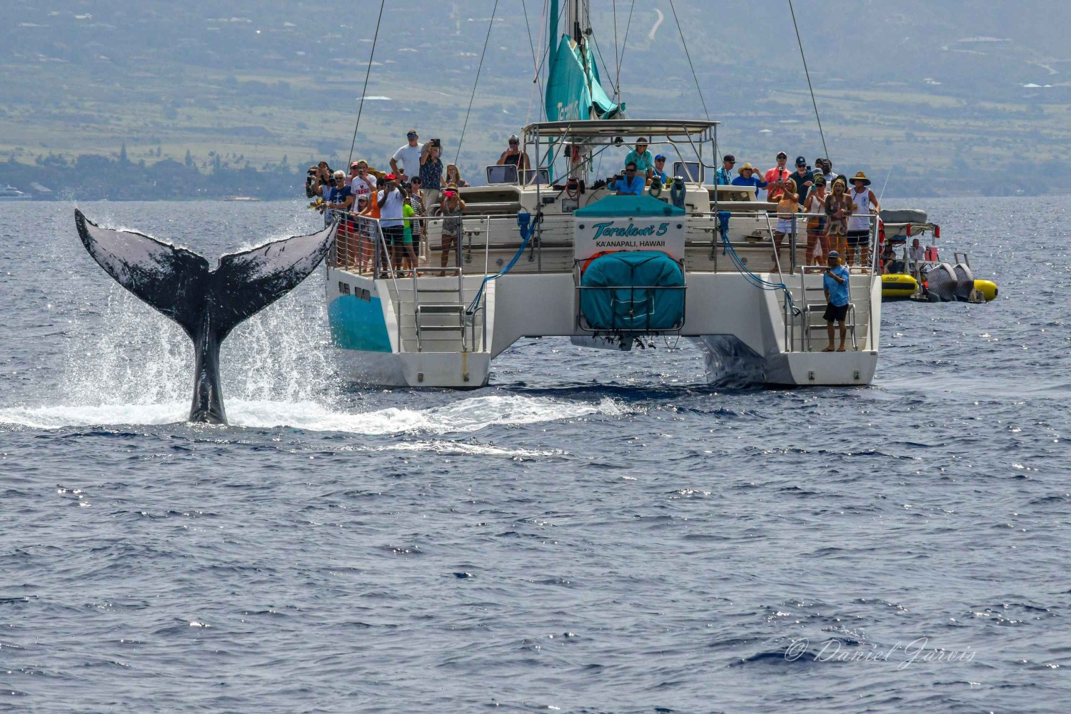 Unisciti al tour per il miglior avvistamento delle balene di Maui a bordo di questo catamarano Premier Whale Watch, dove potrai gustare pupus gourmet, un open bar e 2,5 ore in compagnia delle maestose megattere di Maui. Questo tour esclusivo è limitato a 35 ospiti e parte ogni giorno alle 12:30 dalle splendide spiagge di Ka'anapali Beach.