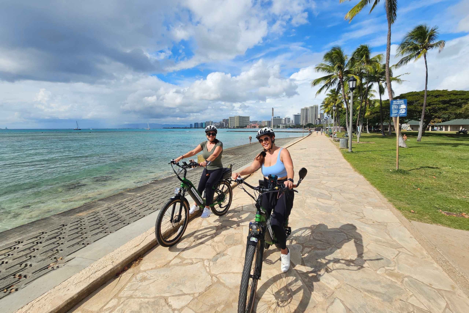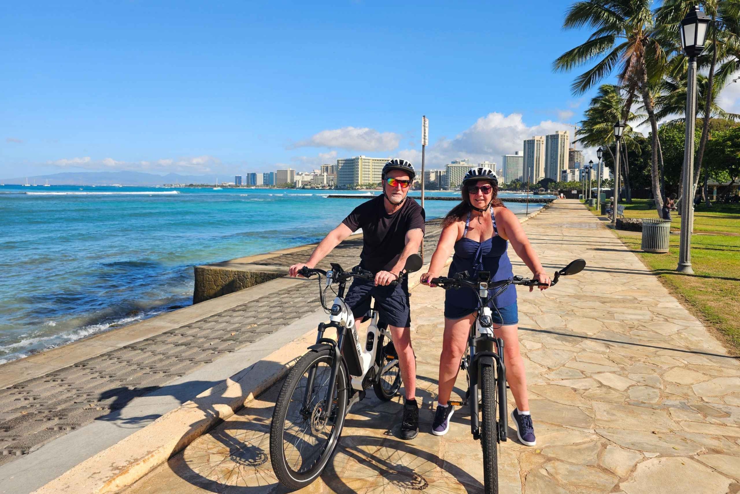 Il nostro tour in bici elettrica da Waikiki al Diamond Head Crater è un viaggio indimenticabile attraverso paesaggi iconici. Scivola senza fatica attraverso strade affollate, passando per resort di lusso e punti di riferimento storici, immergendoti nella cultura hawaiana. Lungo il percorso costiero, ammira le acque azzurre e le spiagge dorate, immergendoti nell'atmosfera rilassata dell'isola.