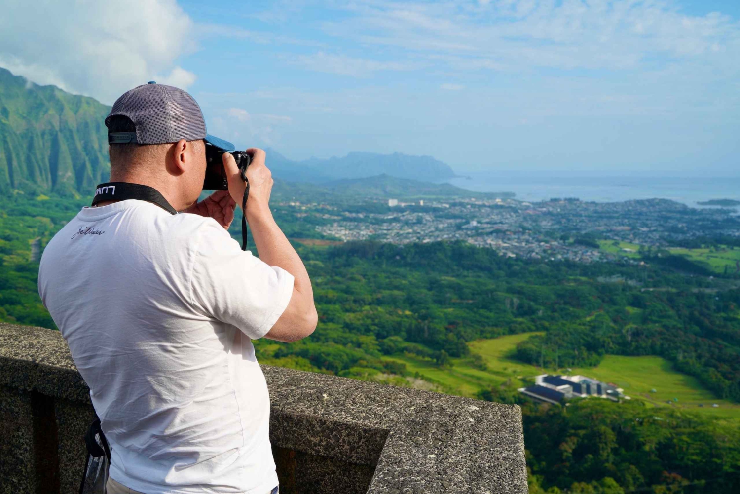 Perfetto per gli appassionati di fotografia e per gli amanti del tramonto, il nostro tour offre opportunità uniche per immortalare i meravigliosi paesaggi hawaiani. Inizia in alto sopra lo skyline di Honolulu, dove la tua guida ti mostrerà come scattare splendide foto panoramiche dal Pali Lookout.