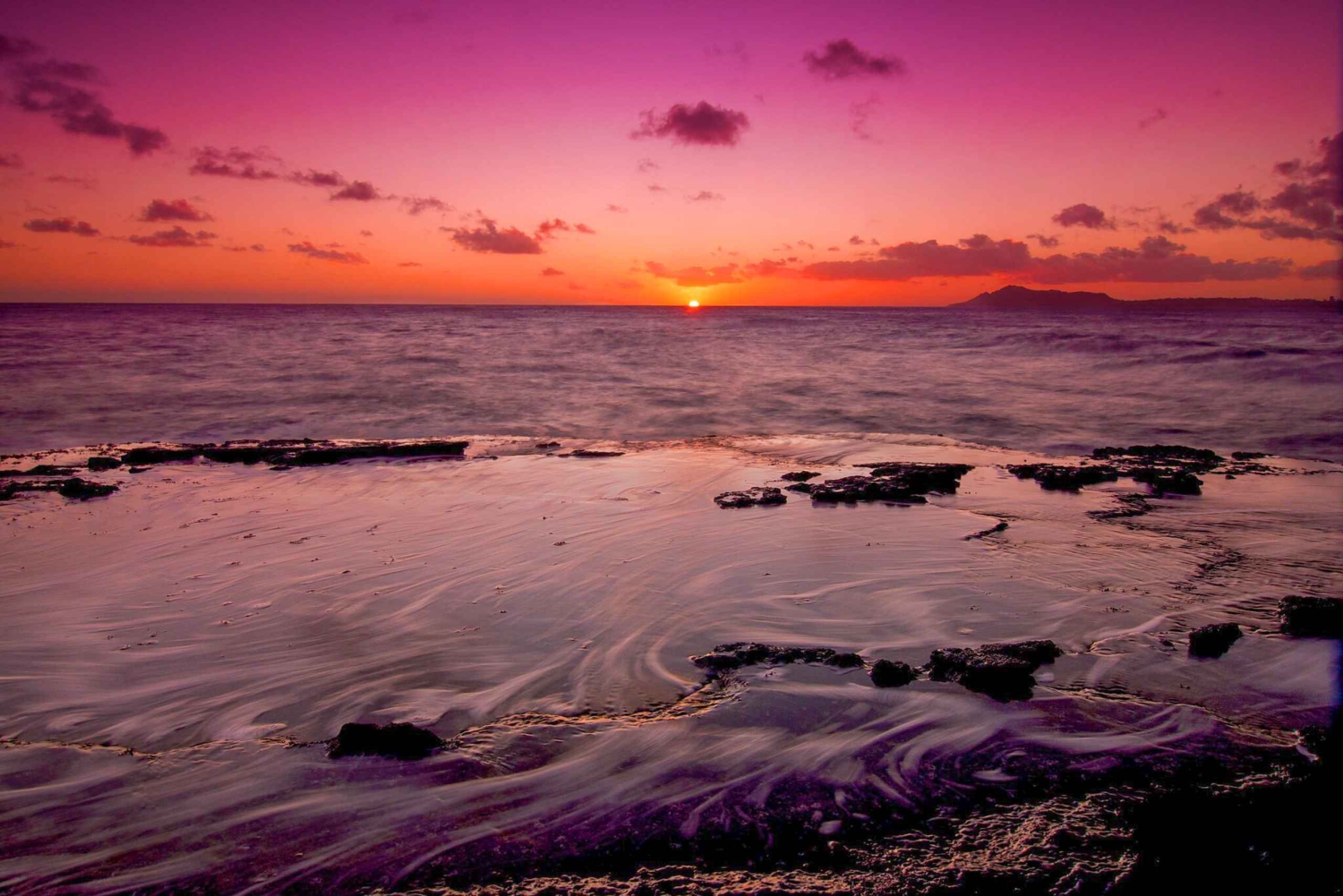 Assisti allo spettacolo naturale dell'Halona Blowhole, dove gli spruzzi dell'oceano possono librarsi sopra la tua testa in questo luogo iconico del cinema e meta fotografica molto popolare. Immortala la spettacolare Eternity Beach prima di concludere il tuo viaggio con il tramonto più epico delle Hawaii sulla punta orientale di Oahu. Faremo una breve sosta per andare in bagno e fare uno spuntino prima del tramonto. Guarda il sole che scende lungo le scogliere, creando uno sfondo affascinante per le tue foto indimenticabili.