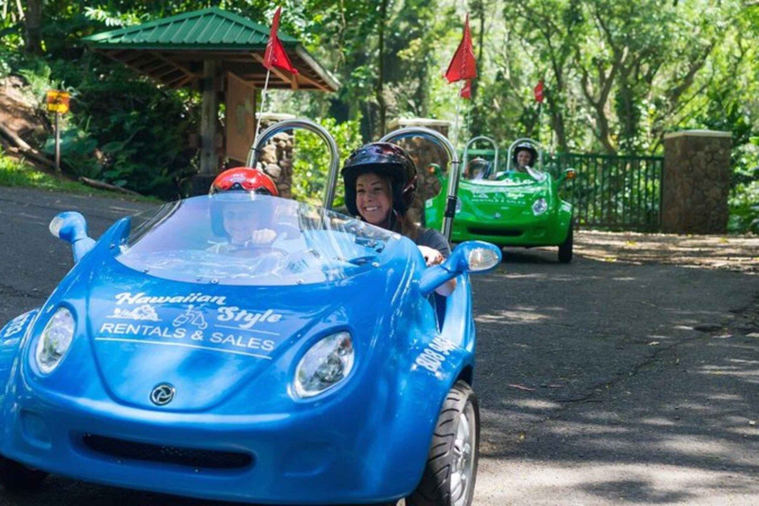 Vuoi un modo divertente di viaggiare con la famiglia o con gli amici? I nostri Scoot Coupé per due persone sono disponibili in un'ampia gamma di colori vivaci che ti faranno sicuramente girare la testa mentre esplori le destinazioni da non perdere delle Hawaii!