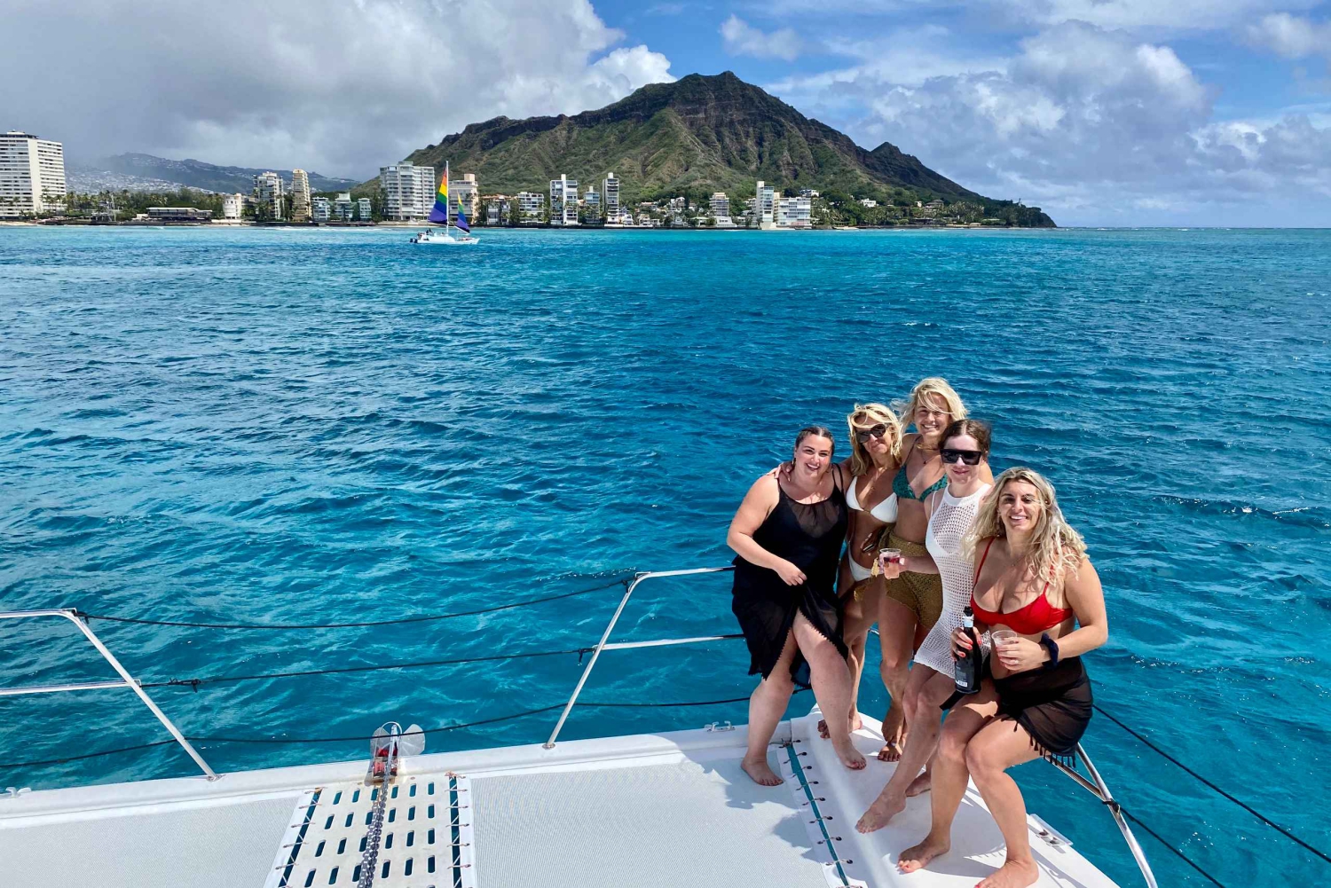 プライベート カタマラン クルーズで、別の視点からオアフ島を発見しましょう。真っ青な海、島の緑豊かな南海岸、地元の野生生物の印象的な景色を眺めながら、太陽を肌で感じてください。色とりどりのサンゴ礁と魚の間でシュノーケリングをするために、冷たい海に飛び込みましょう。