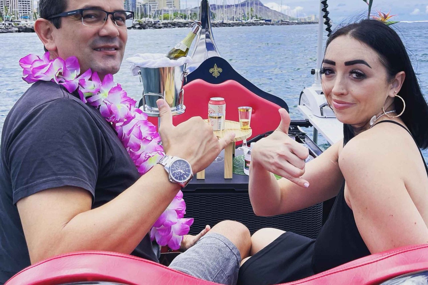 穏やかな海をクルーズし、オアフ島の名所や有名なランドマークを眺めながら、さわやかなドリンクやおいしいペストリーをお楽しみください。熟練のゴンドラに乗って、ゆったりとくつろぎながら、音楽に合わせて船を案内します。