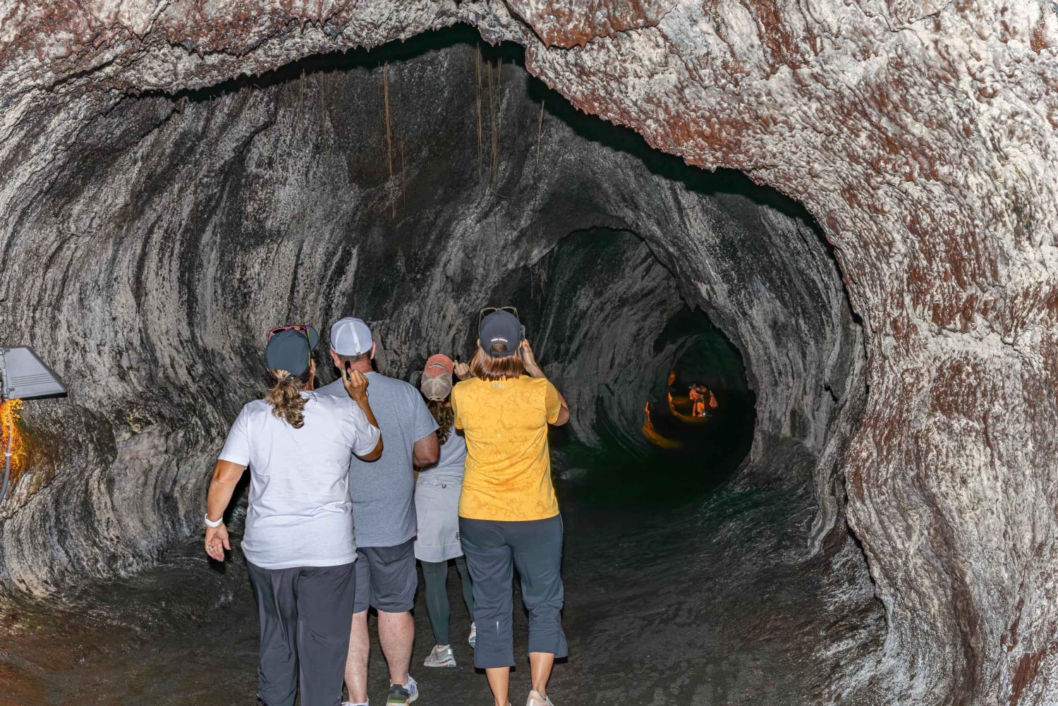 滝に立ち寄った後、南のハワイ火山国立公園へ向かいます。ボルケーノ国立公園は、世界で最も活発な火山であるキラウエアと世界最大の火山であるマウナロアがあるだけでなく、絶滅の危機に瀕している野生生物や地球上で最もユニークな地質学的形成のいくつかが生息する場所でもあります。公園内での冒険は、キラウエアの頂上にあるハレマウマウ火口から始まります。世界で最も活発な火山の端に立つだけでなく、2018年の噴火後にここで起こった大きな変化についても学ぶことができます。次に、蒸気が立ち上るワヒネカプの断崖に向かい、地面から染み出る熱い蒸気を感じます。ここでは、地下水が岩に浸透し、地下の溶岩によって熱され、蒸気となって地表に戻ります。その後、サーストン溶岩洞窟、ハワイ語でナフクに向かいます。ここでは、ガイドが原生林と長い溶岩洞を短時間散策しながら、さまざまな植物、動物、溶岩洞の形成についてお話しします。サーストン溶岩洞は500年以上前にできたもので、長さは600フィート、場所によっては直径が25フィートを超えます。