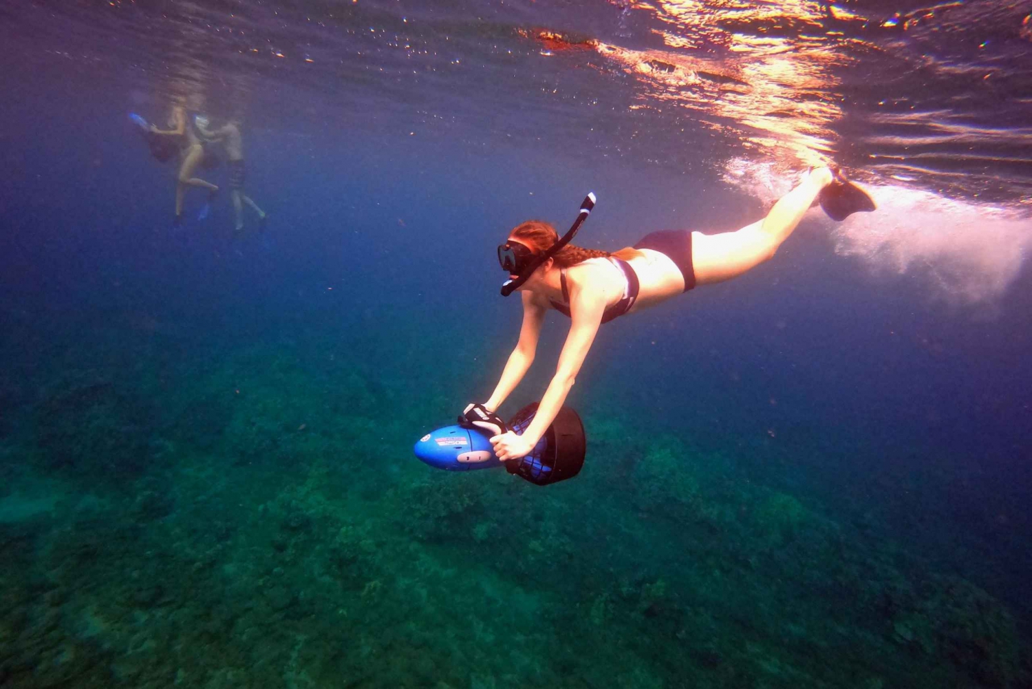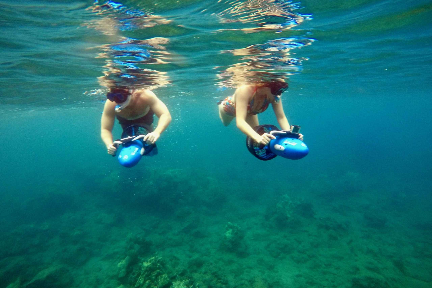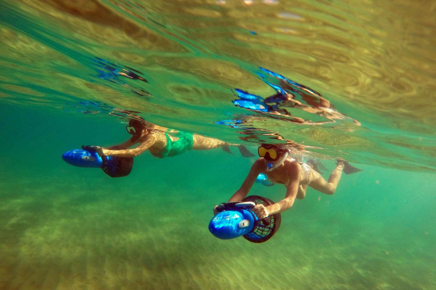 水中スクーターでシュノーケリング。より遠く、より速く移動して、この地域のサンゴ礁やその他の海洋生物を観察しましょう。