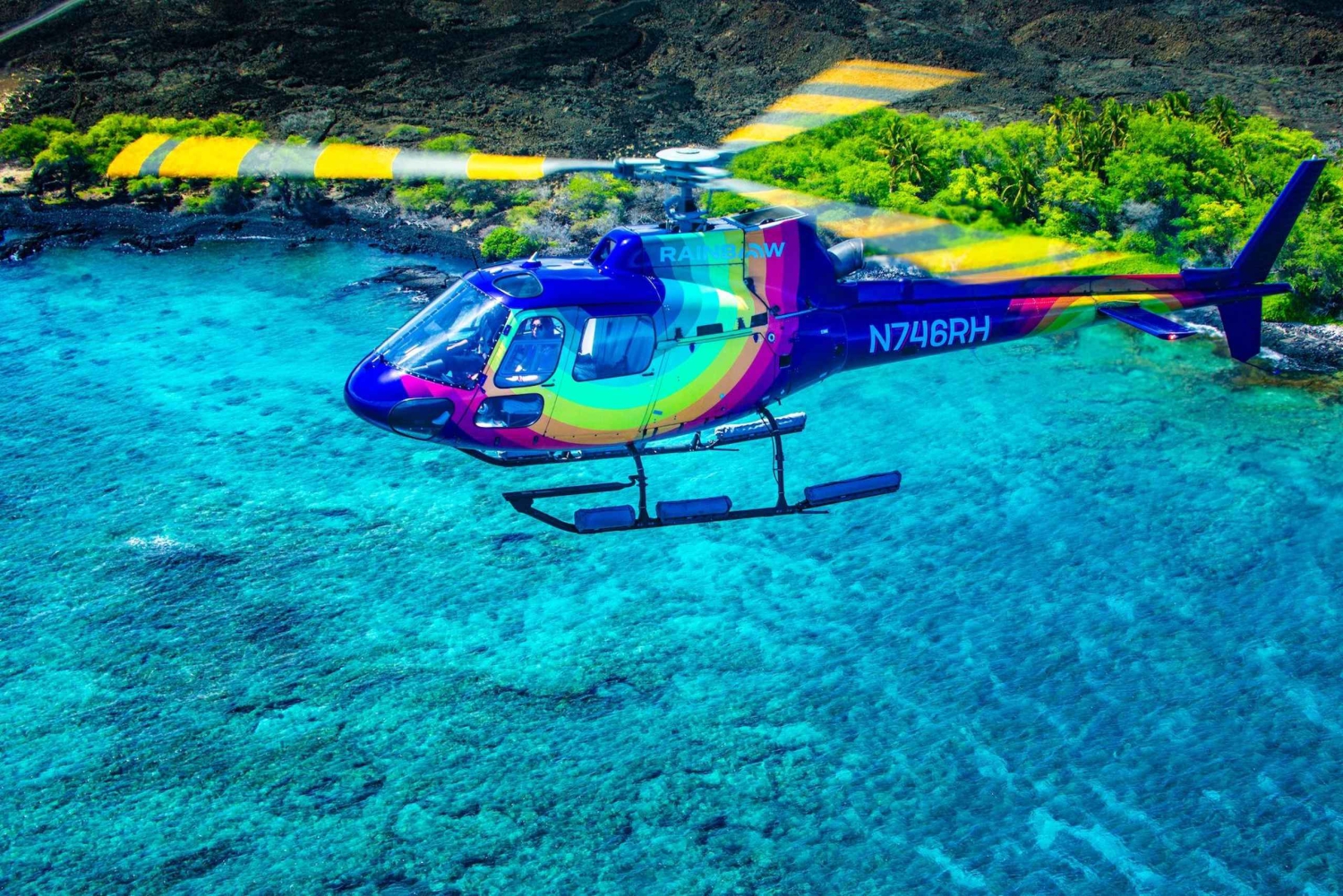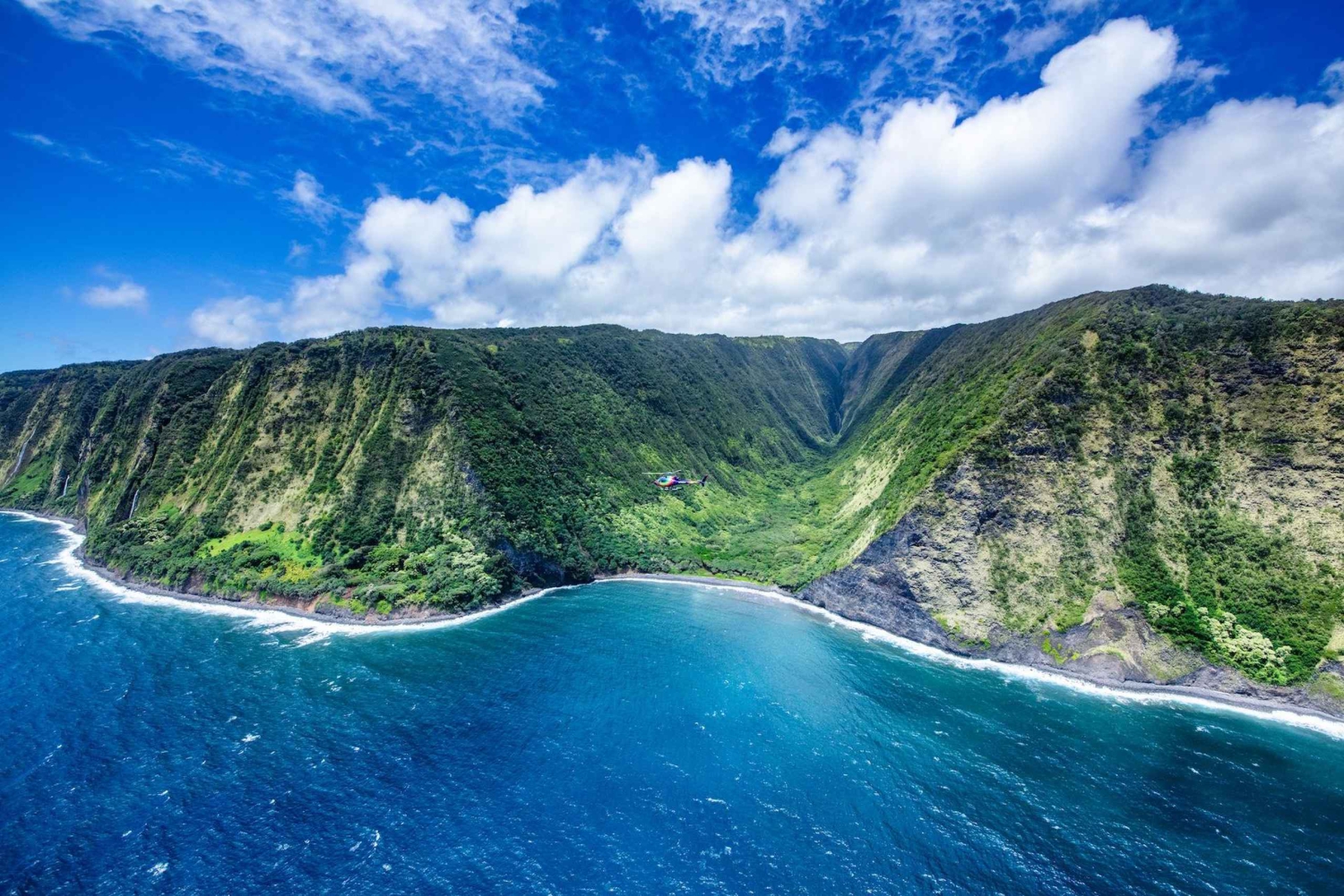 90 分間のユニークなプライベート ヘリコプター ツアーで贅沢な旅をお楽しみください。そびえ立つ火山、流れ落ちる滝、そして素晴らしいコハラ コーストをご覧いただけます。60 分間のプライベート着陸では、シャンパン、ハワイの地元ジュース、カウ コーヒー チョコレート、フラワー レイなど、シェフが用意したグルメ料理をお楽しみいただけます。