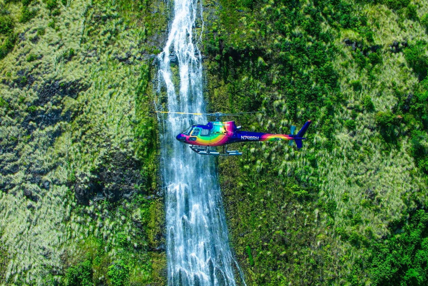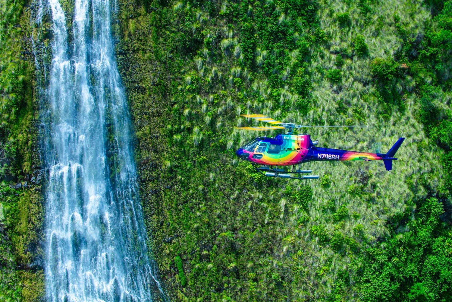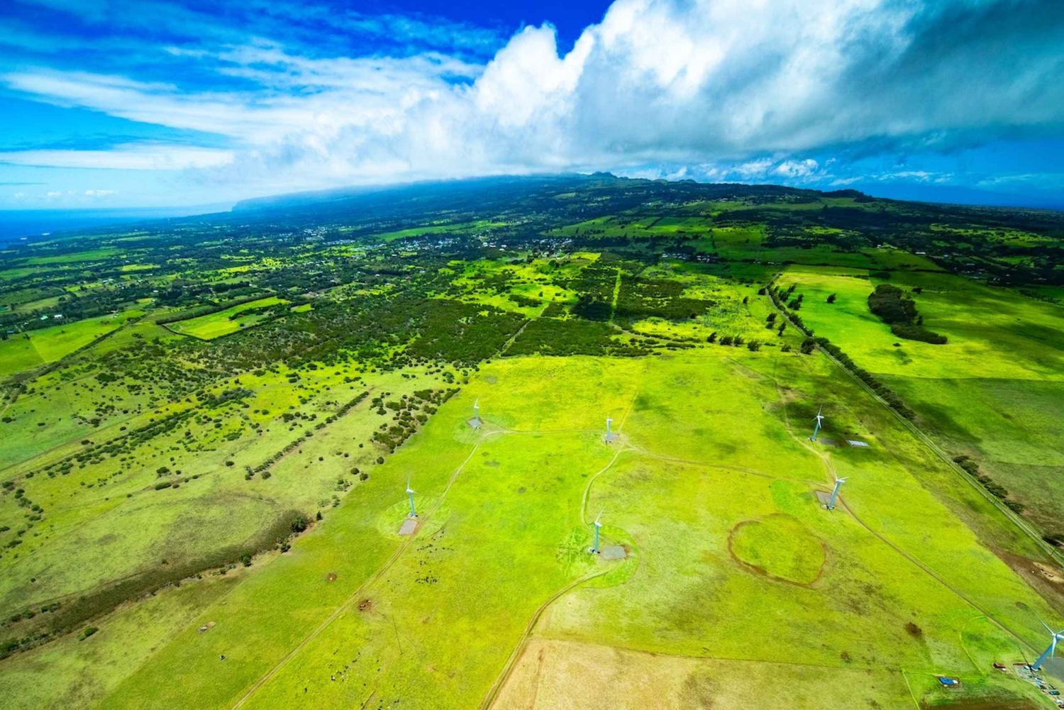 4 つの火山とコハラ コーストの滝を堪能できる、90 分間の素晴らしいヘリコプター ツアーを体験してください。ドアのオン/オフをお選びいただけ、海岸の風景、緑豊かな森林、火山の風景が融合した景色をお楽しみいただけます。