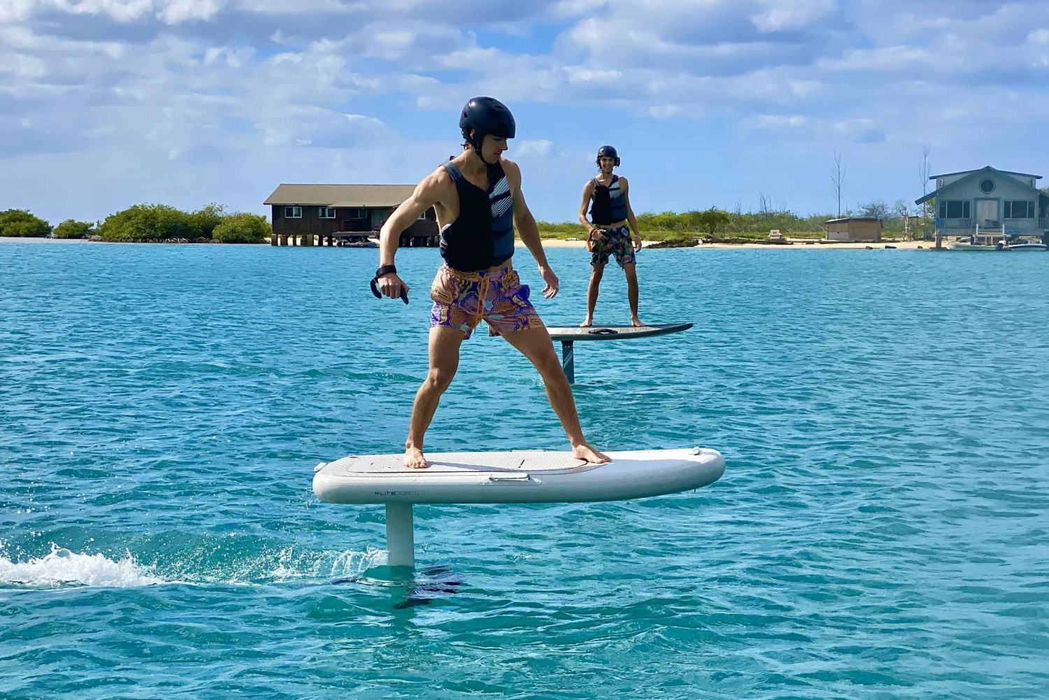 Een eFoil of elektrische draagvleugelboot is een door batterijen aangedreven en op afstand bestuurbare surfplank. Leer over het water vliegen als een hoverboard uit Back To The Future, en het is makkelijker en veiliger dan surfen.