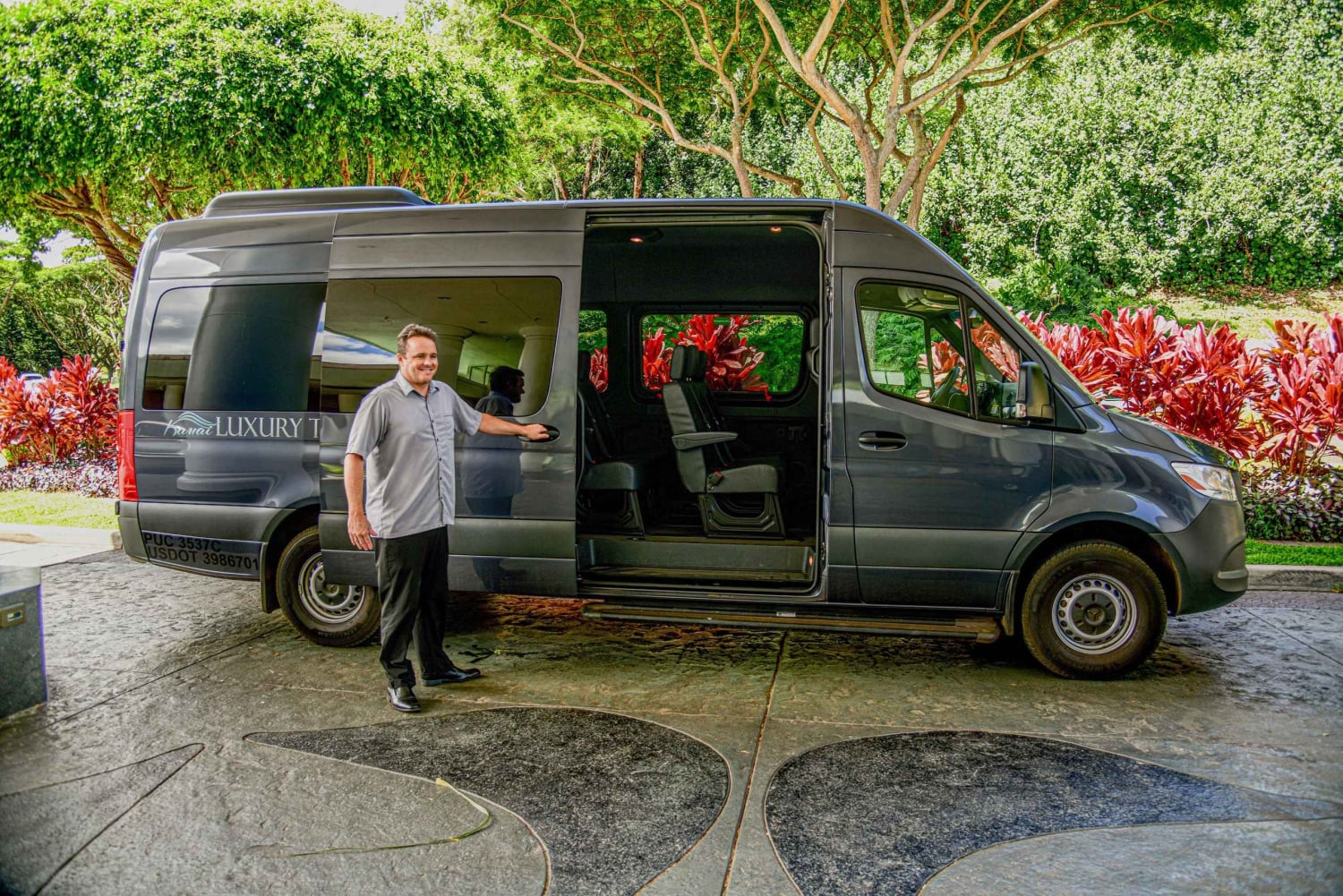 - Je dag begint als je gids je ophaalt aan de noord- en oostkust van Kauai. De comfortabele touringbus met airconditioning heeft aan alle kanten grote ramen zodat je de stranden, bergen en watervallen kunt bewonderen.