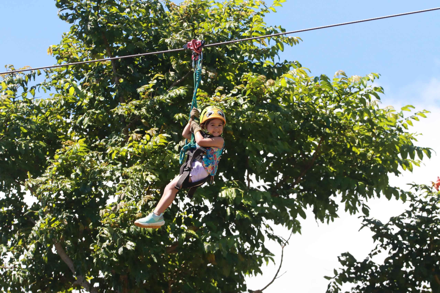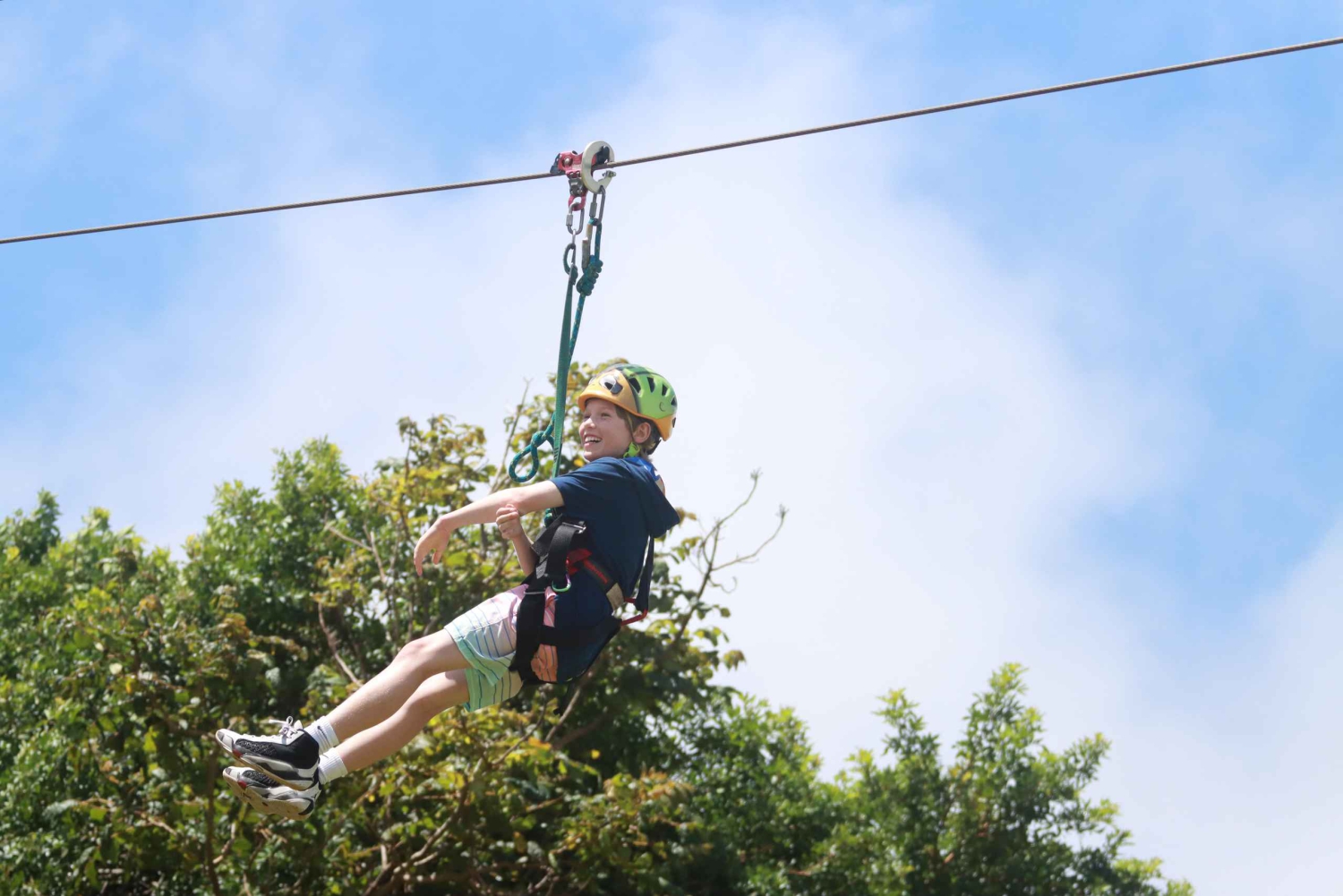 - Zet je helm op en maak je harnas vast om een netwerk van 7 ziplijnen te bedwingen