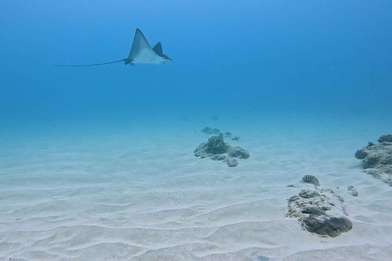 Når turen begynner, drar vi fra den travle havnen Kewalo Basin og legger ut på en kort båttur til ankerplassen vår i nærheten av Waikiki. Her begynner virkelig magien. Dykk ned i Stillehavets vakre blå vann og nyt friheten ved å svømme i paradis. Enten du er en erfaren vannentusiast eller en nybegynner, vil du få en opplevelse.