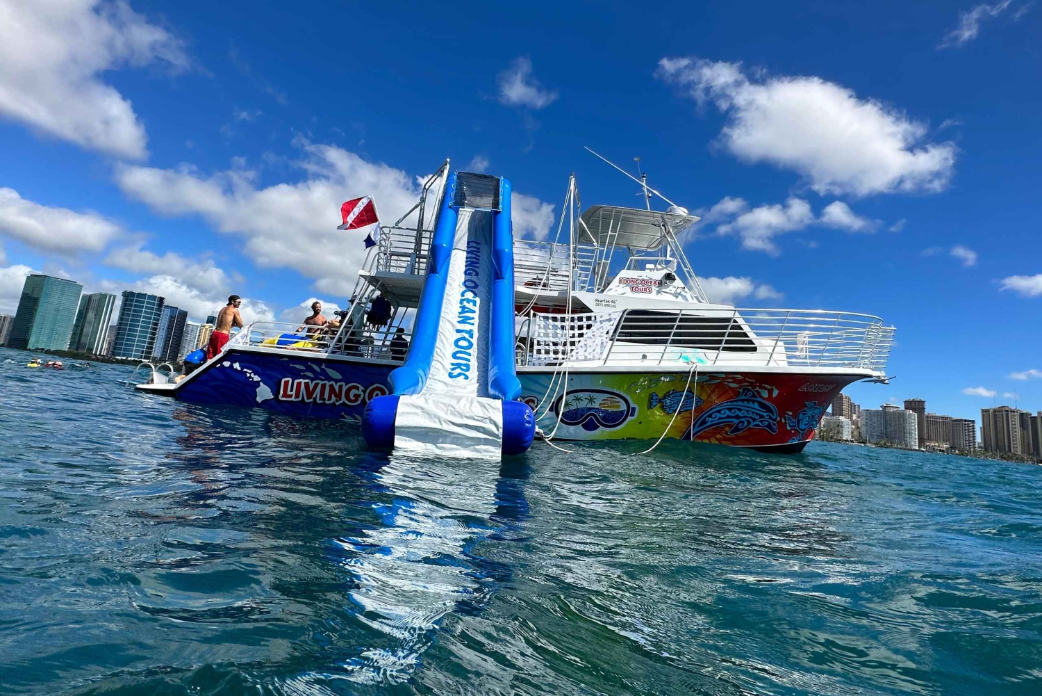 Opplev det ultimate øyeventyret med vårt Deluxe Waikiki Snorkel and Wildlife Cruise! Snorkel med tropiske fisker, sus ned en vannsklie og slapp av på vårt vakre fartøy.