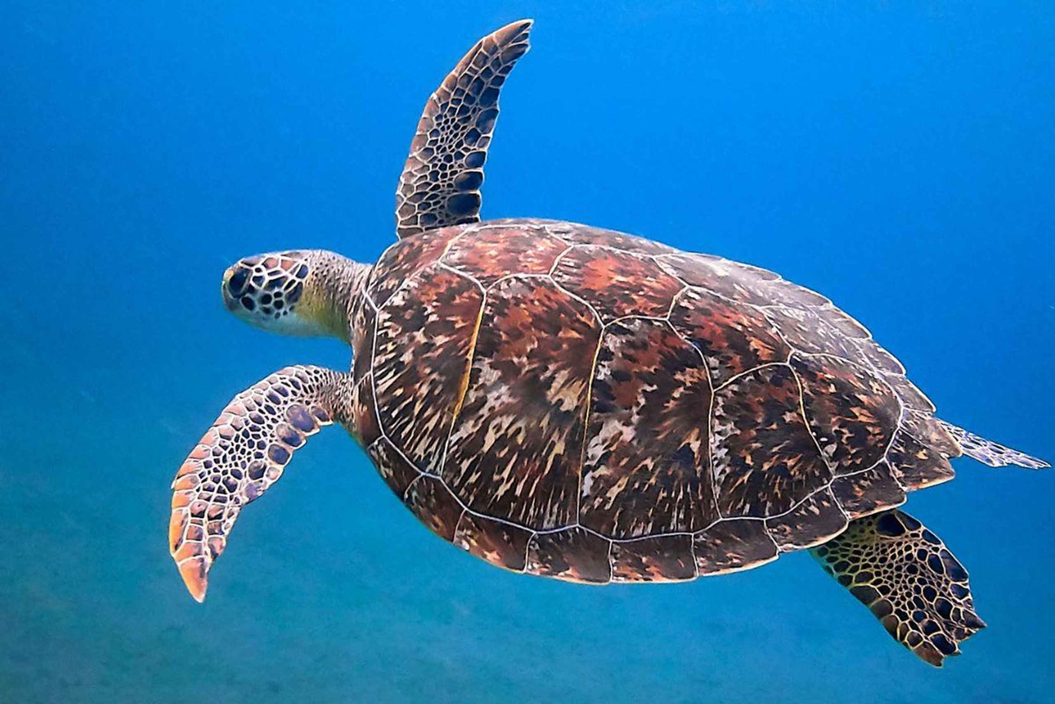 Odkryj południowe wybrzeże Oahu w pobliżu Waikiki podczas wycieczki snorkelingowej z Honolulu. Zanurz się w tętniącym życiem świecie hawajskich zielonych żółwi morskich i różnorodnych ryb rafowych w morskim raju.