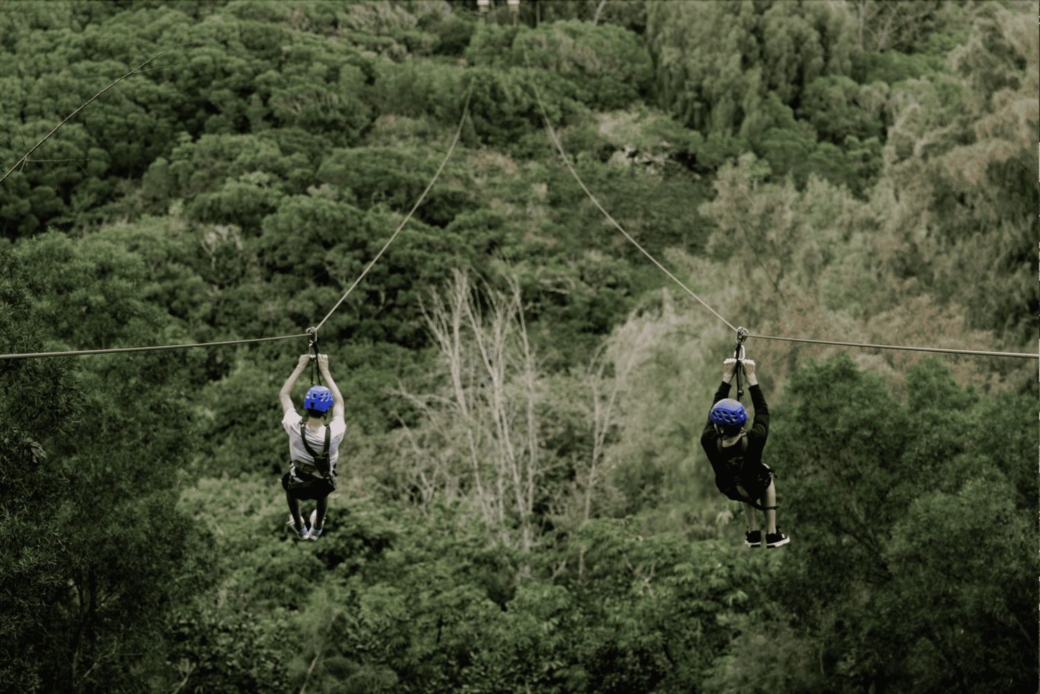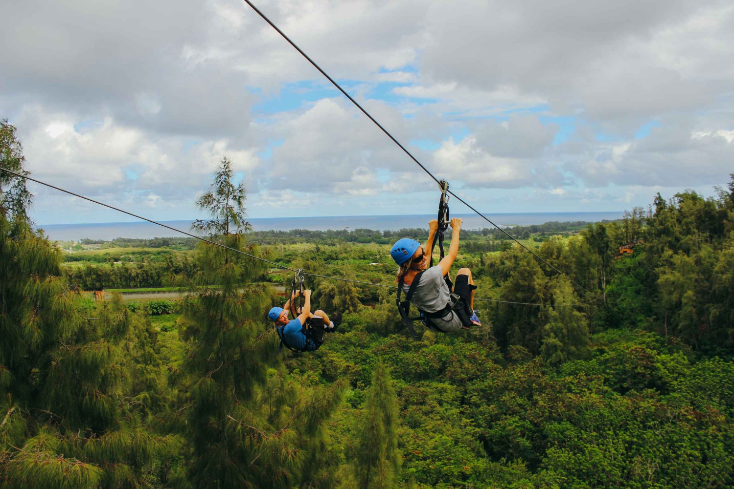 Mijaj farmy, przechodź przez dżunglę i wspinaj się po zboczach gór, podziwiając różne krajobrazy śródlądowe, jakie Hawaje mają do zaoferowania. Przeżyj 8 zjazdów tyrolką obok siebie na jednych z najdłuższych, najwyższych i wyjątkowo cichych tyrolkach w Oahu, których wysokość waha się od 500 do 2400 stóp (150-730 metrów).