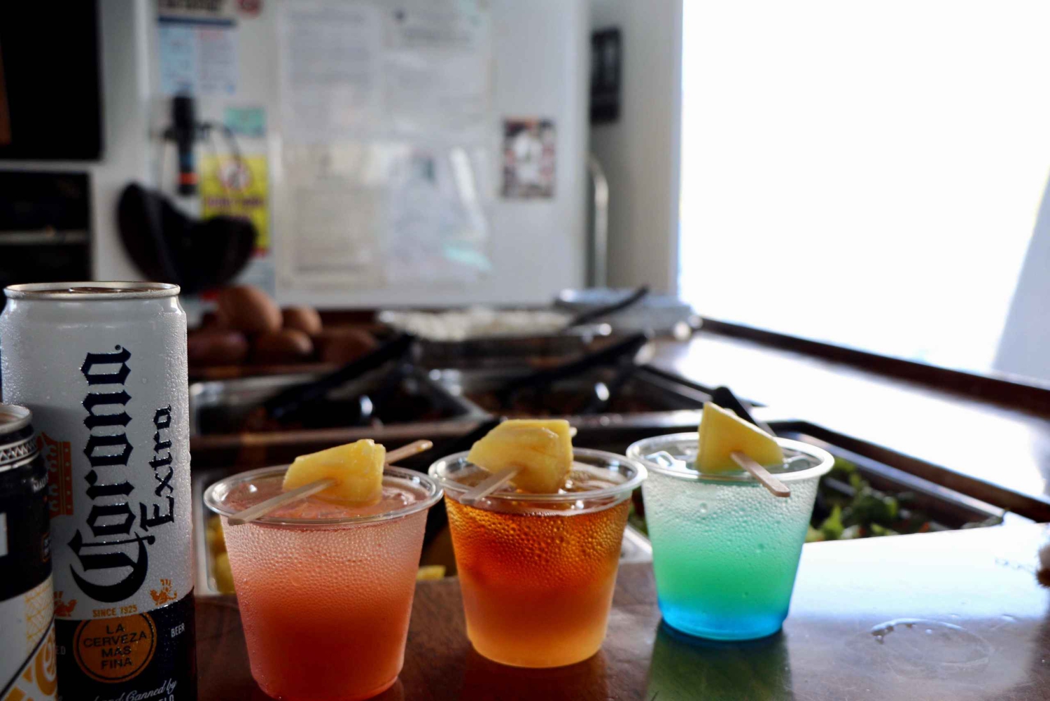 Napoje alkoholowe (limit 4 na osobę dorosłą - napoje alkoholowe obejmują lokalne i krajowe piwo, wino, mai tais i margarity). Dodatkowe napoje można kupić w cenie 3,00 USD za sztukę.