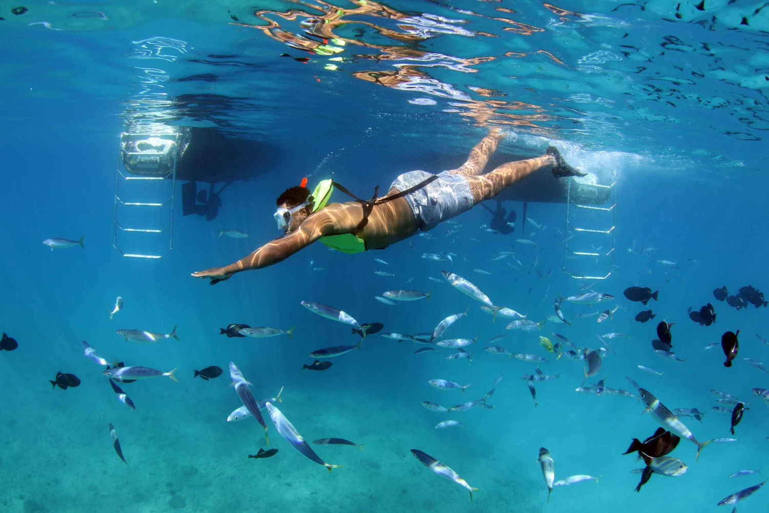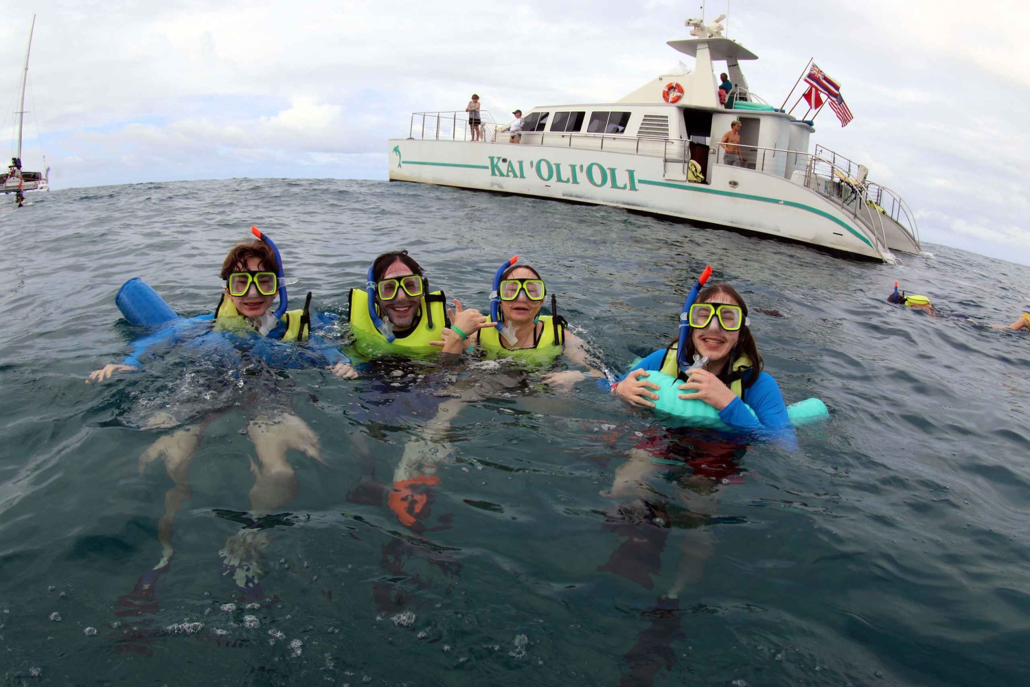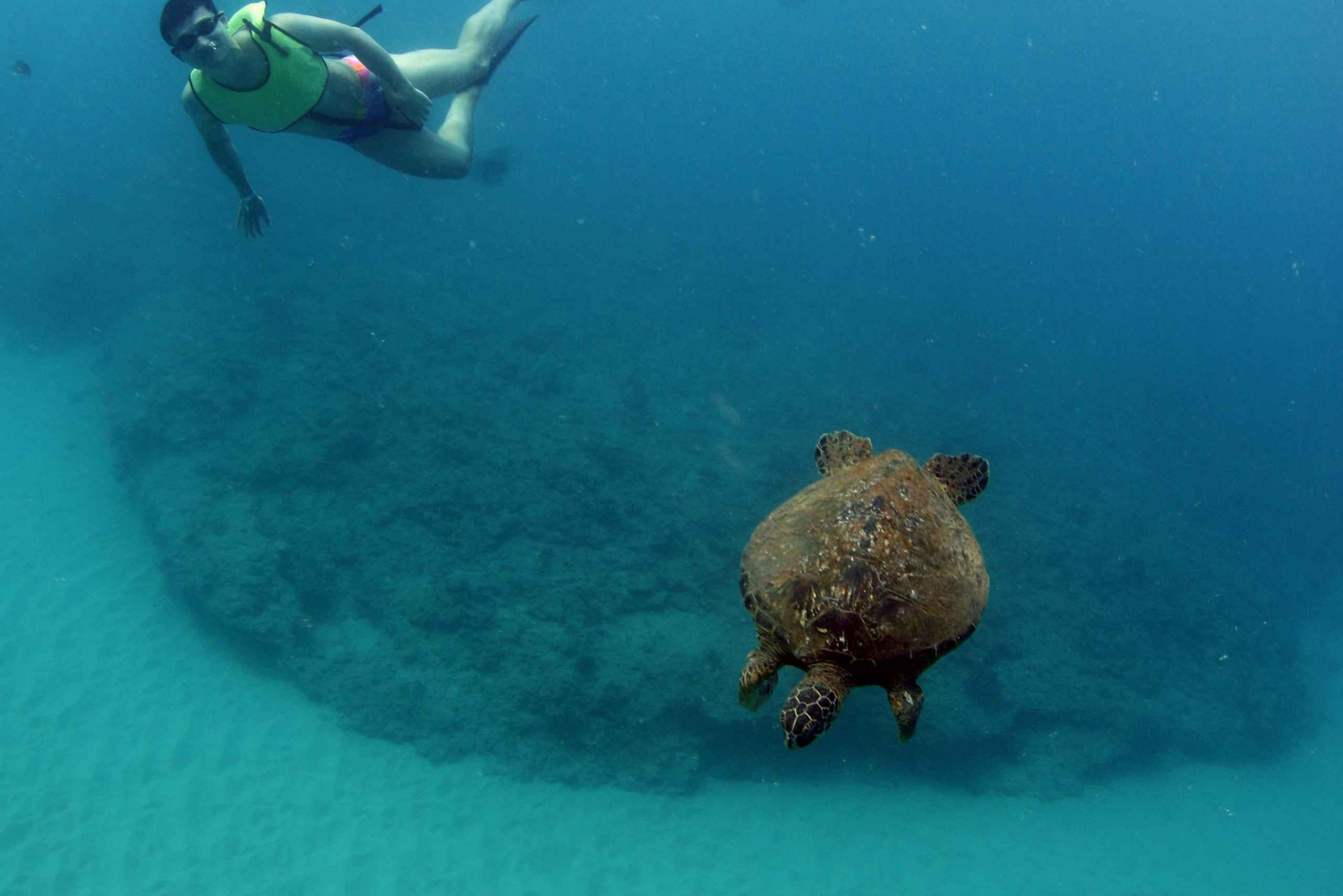 Po podziwianiu pięknych widoków na wyspę i obserwowaniu hawajskich delfinów błystkonosych, wielorybów humbaków (sezonowo), hawajskich żółwi morskich lub latających ryb, ciesz się snorkelingiem z przewodnikiem w dziewiczych hawajskich wodach wśród dziewiczej rafy i życia morskiego z zapewnionym wysokiej jakości sprzętem do snorkelingu.