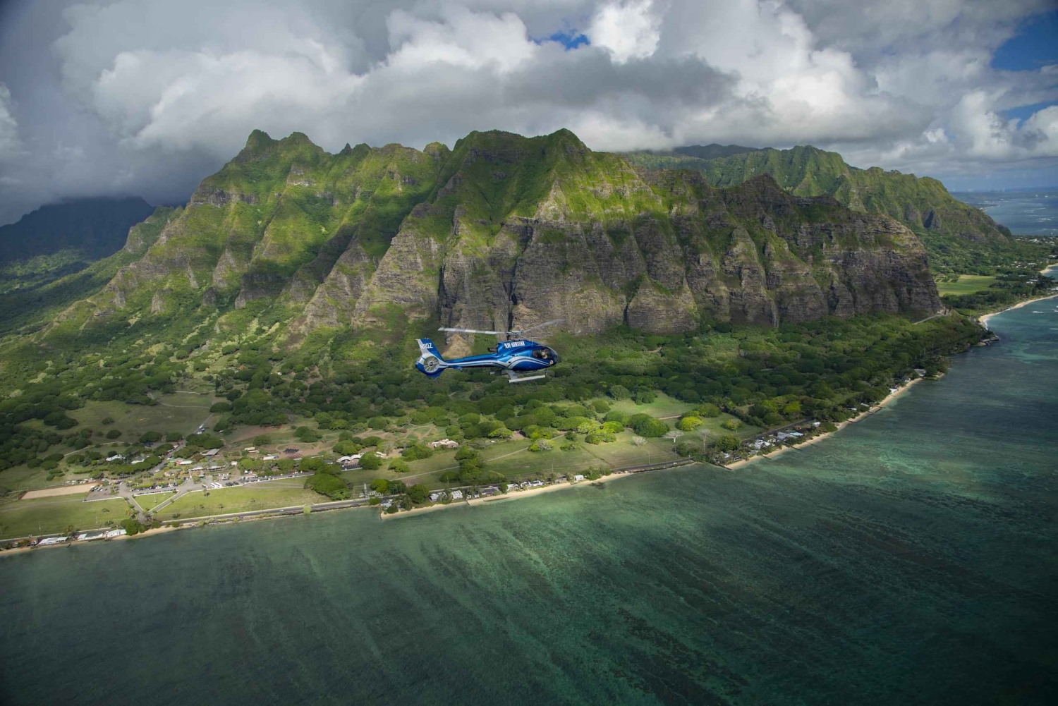 Você conhecerá a beleza de tirar o fôlego de Oahu de um ponto de vista único com o Blue Skies Helicopter Tour. Uma vez a bordo do helicóptero, você terá vistas incomparáveis através de amplas janelas de vidro, projetadas especificamente para passeios turísticos.