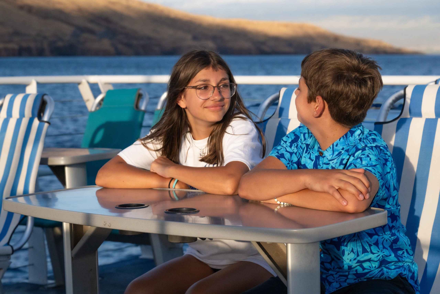 Enquanto janta, aprecia a vista de Kaho'olawe e Lanai à distância, bem como o melhor local para mergulho com snorkel, a cratera Molokini. Contemple as montanhas Kahalawai de Maui que se estendem em direção ao céu. É provável que veja baleias jubarte que visitam as ilhas vindas do Alasca, juntamente com outros mamíferos marinhos.