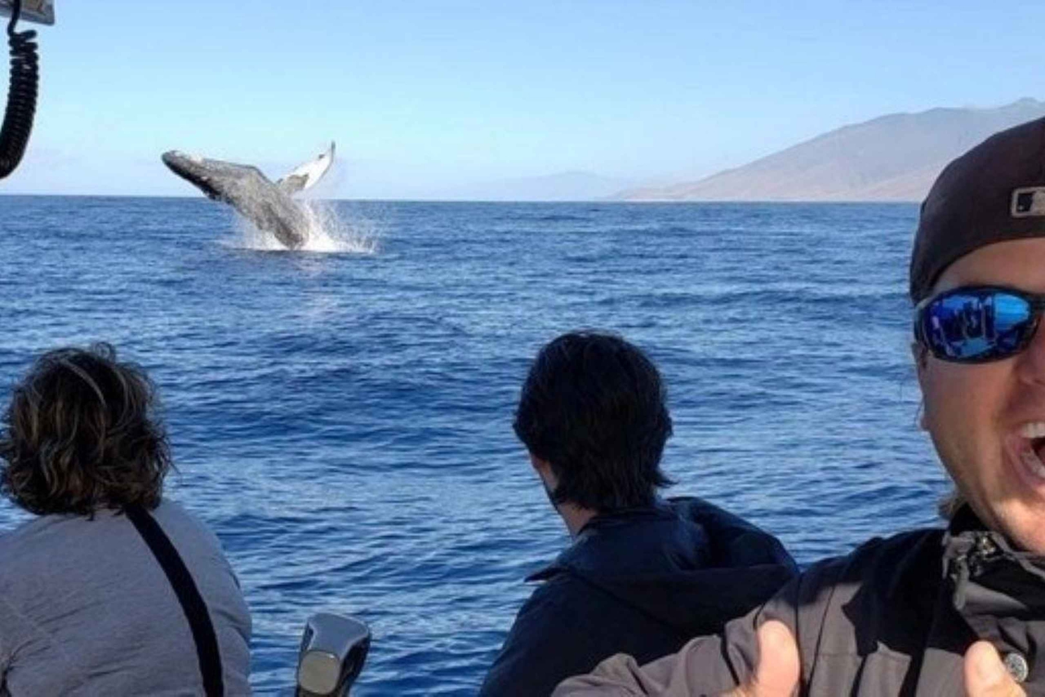 Совместите снорклинг на Молокини с наблюдением за китами на быстром и маневренном надувном судне с жестким корпусом. Путешествуйте по водам, наполненным горбатыми китами с высоким процентом стай матерей, детенышей и детенышей.