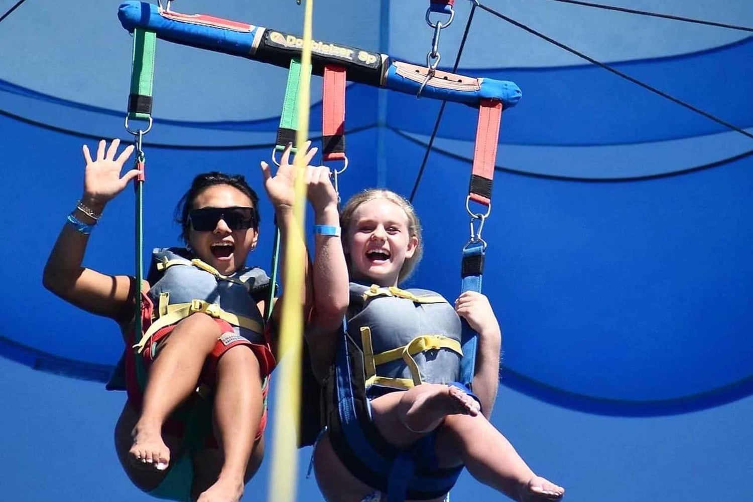 Беременные женщины не могут лететь. Детям должно быть не менее 5 лет, чтобы участвовать в парасейлинге, и они должны весить не менее 50 фунтов.