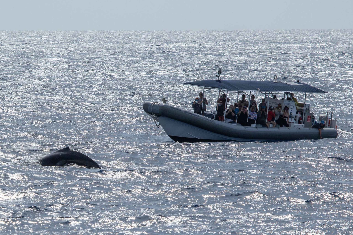 Ge dig ut på ett otroligt valskådningsäventyr ombord på vår 41ft Super-Raft. Upplev närgångna möten med knölvalar i deras naturliga miljö.