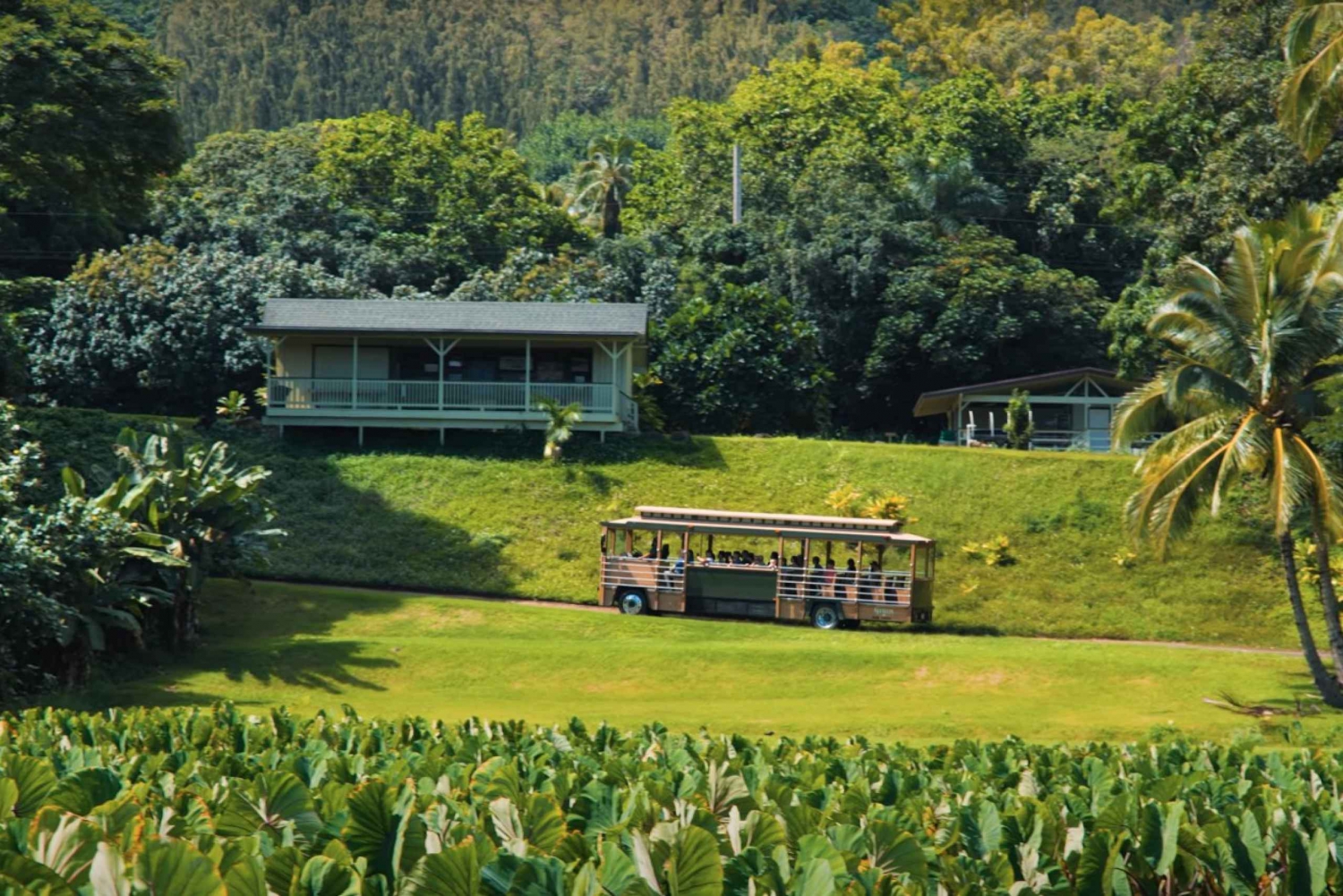 Upplev skönheten på Oahus Kualoa Ranch med en rundtur bakom kulisserna i odlingarna och trädgårdarna. Utforska 153 tunnland grönska med vagn, se en 1 000 år gammal damm och lär dig mer om den lokala historien.